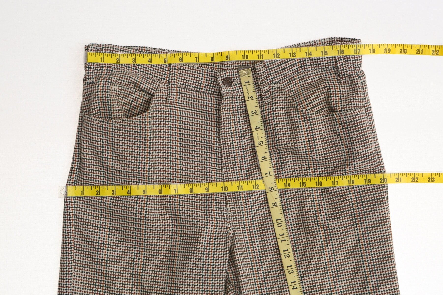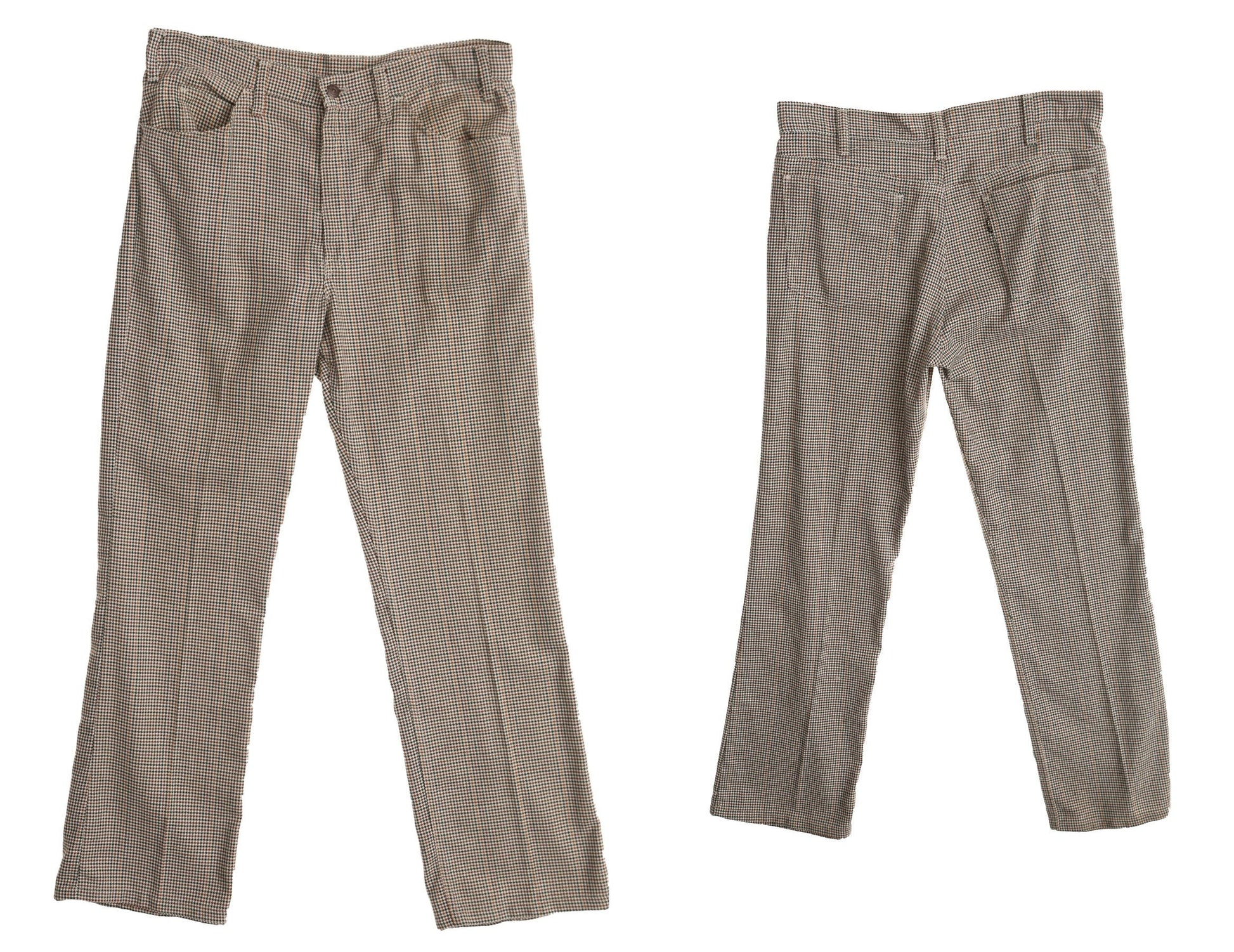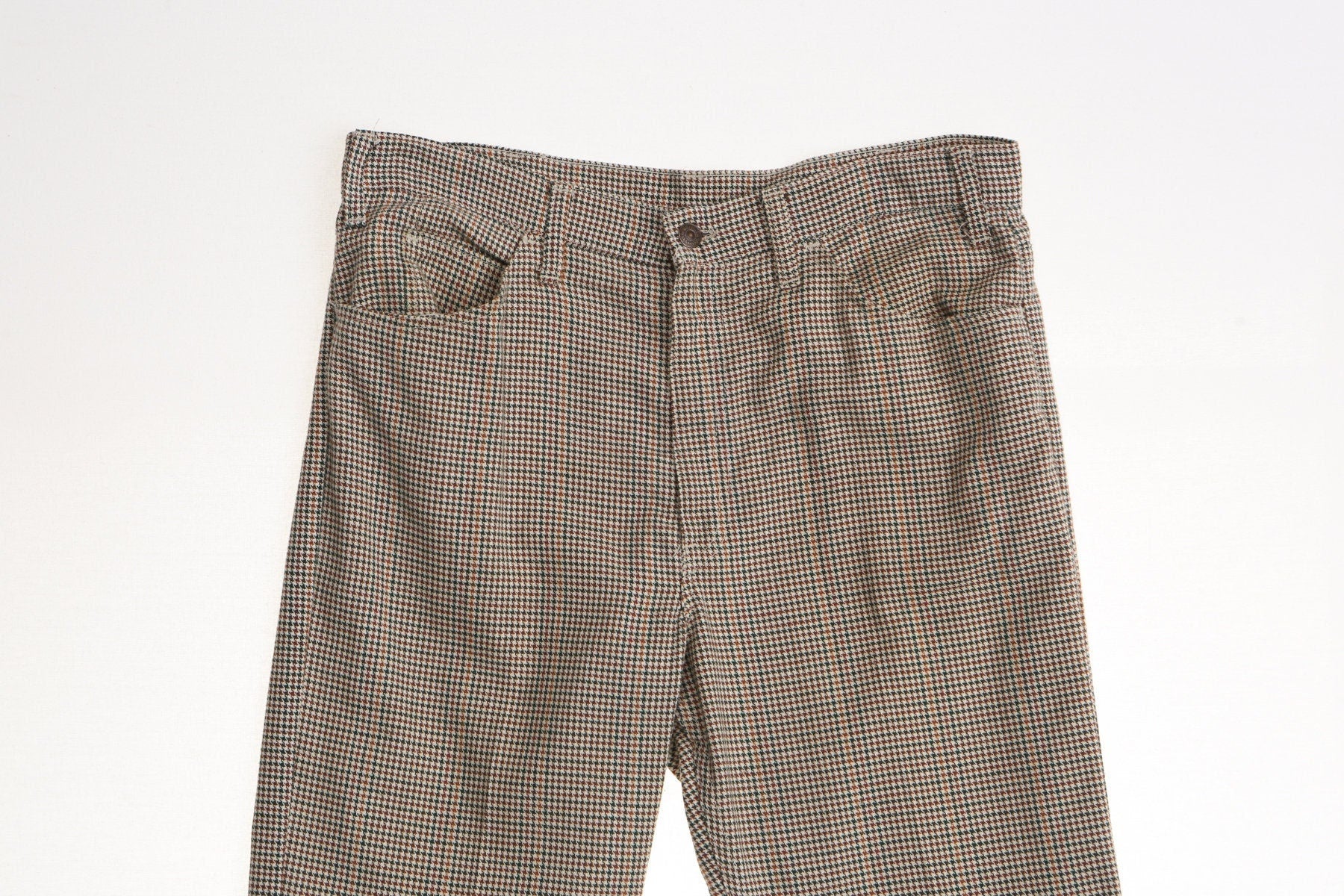 Vintage levi's 70's poly plaid pants men beiege green black tab casual hippie disco