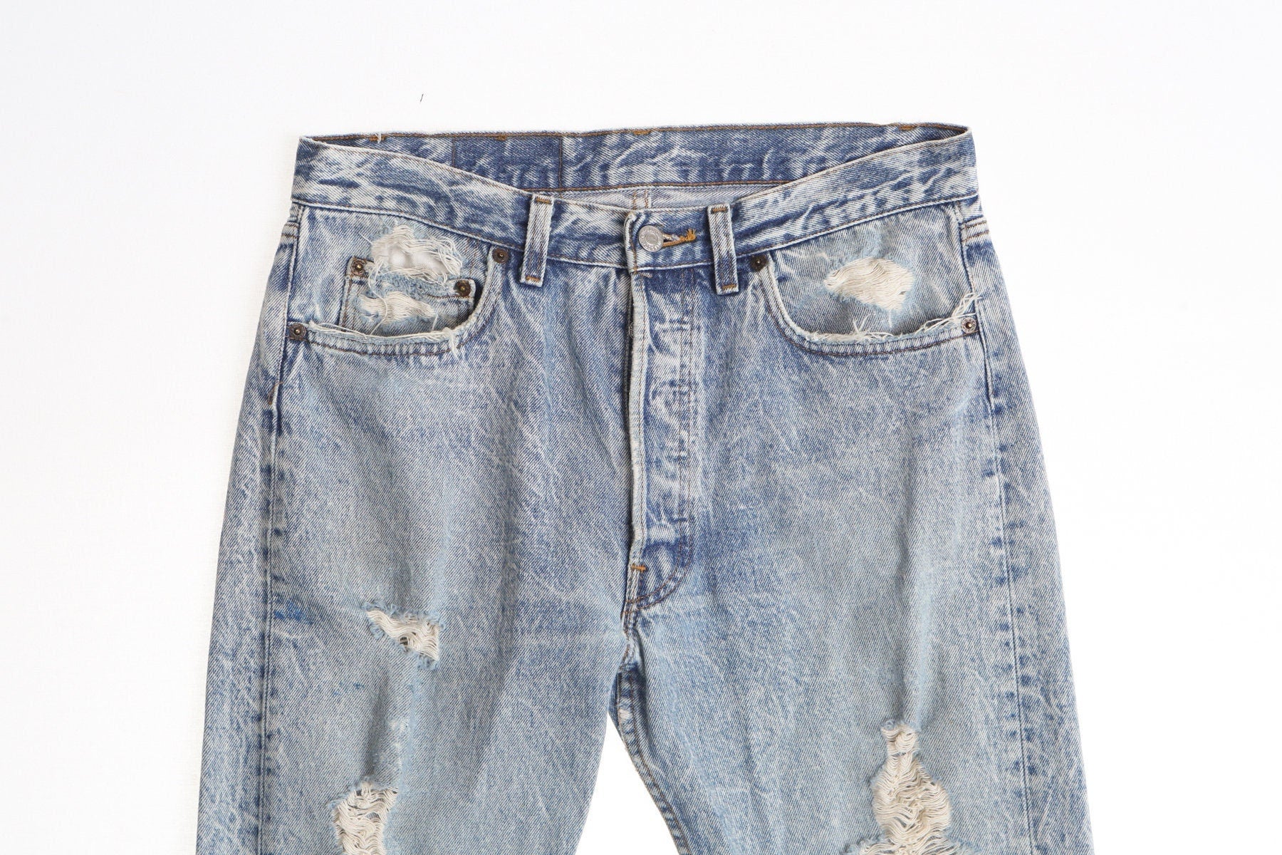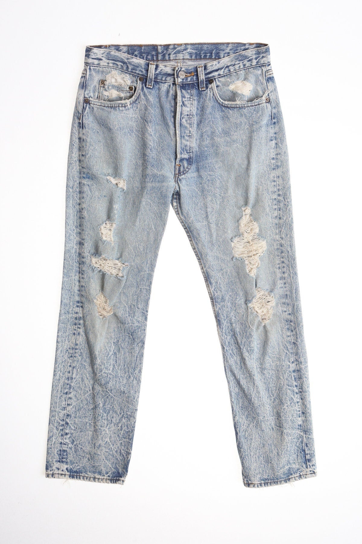 Vintage levi's stonewashed blue jeans denim pants men 90's white high waist distressed