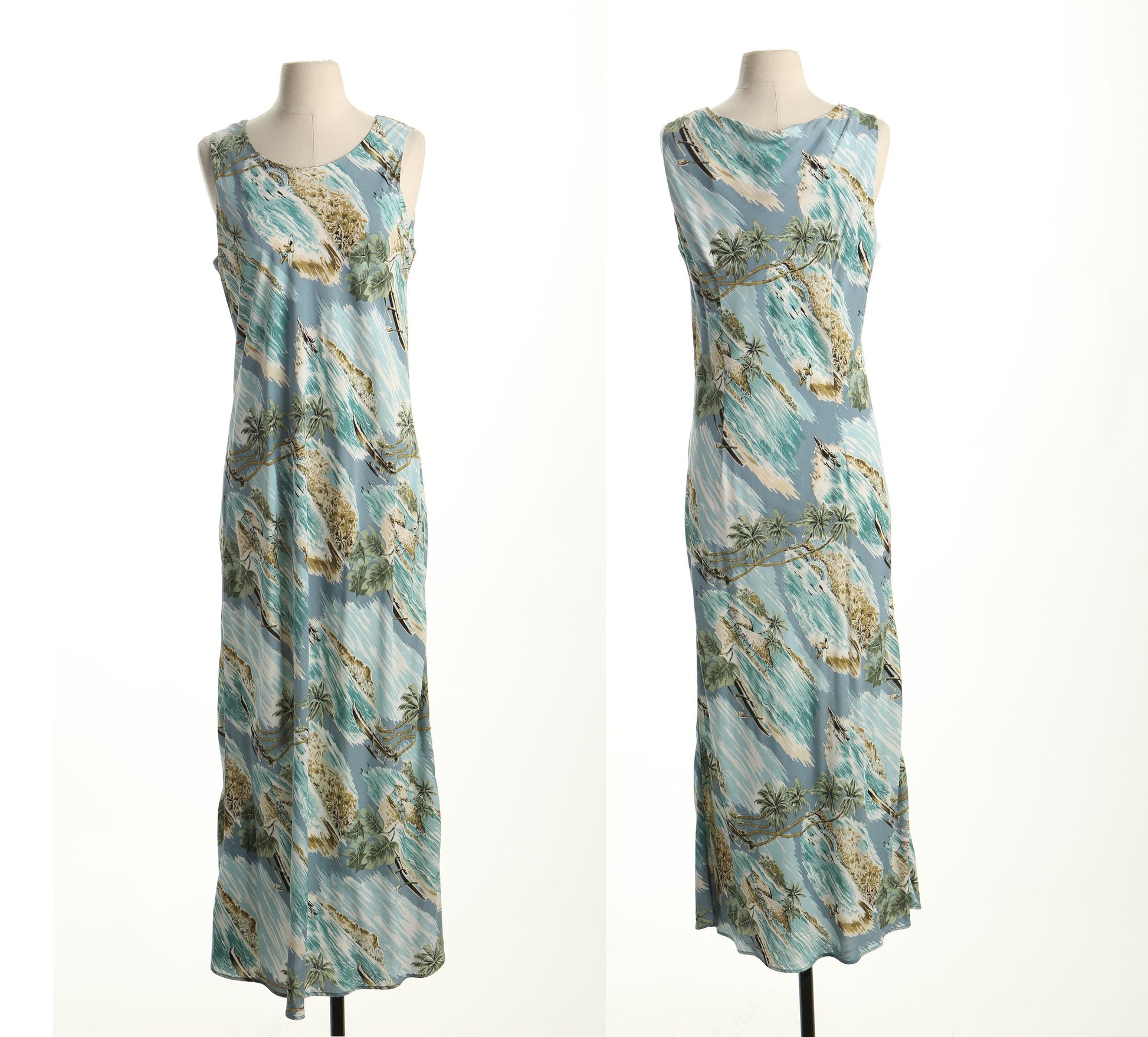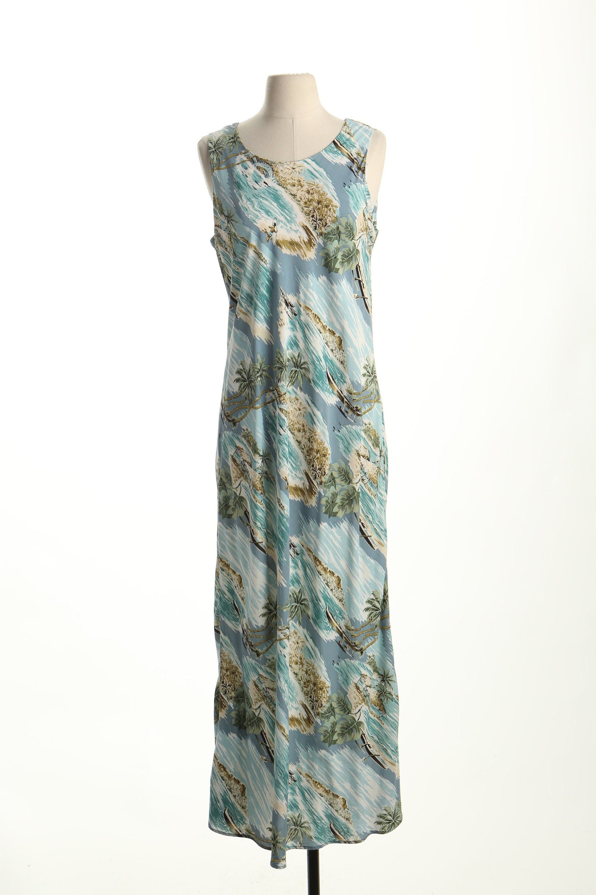 Vintage long hawaiian hawaii dress beach made in hawaii women green blue sleeveless