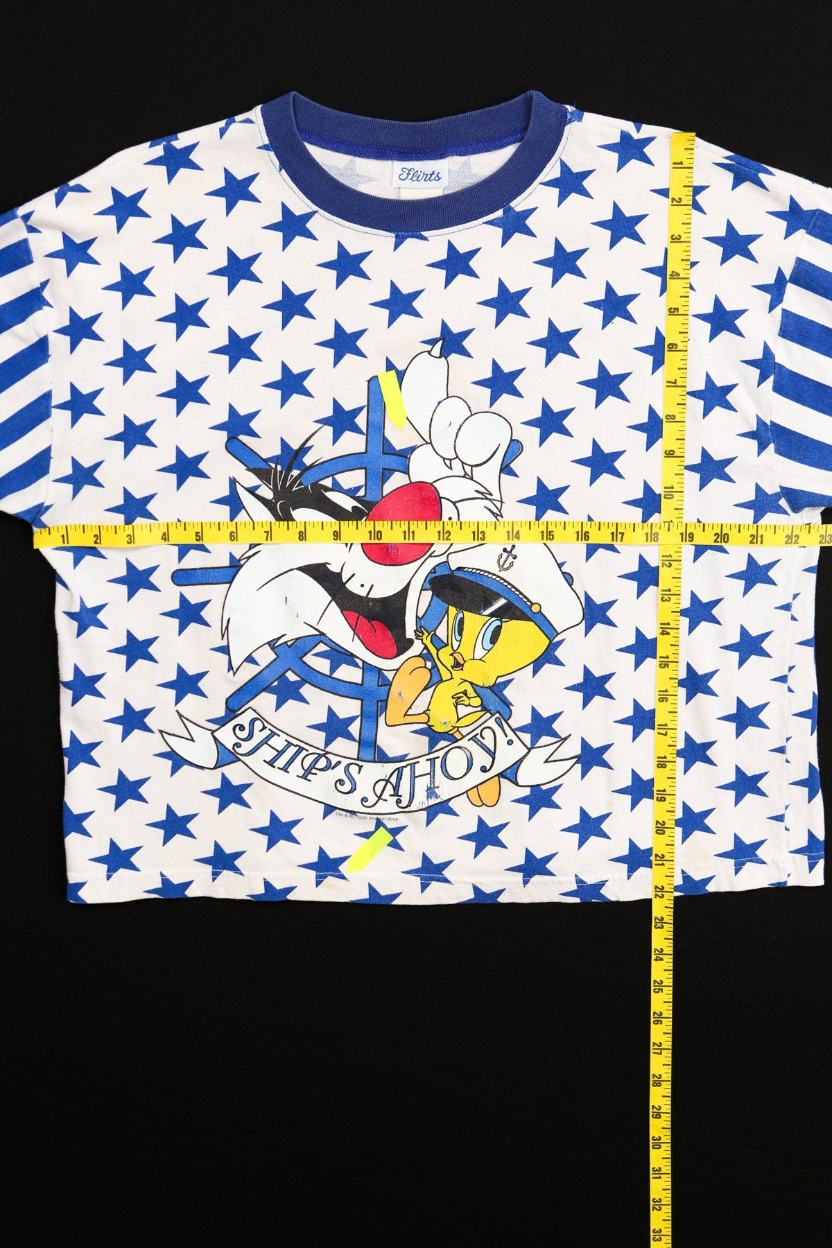Vintage looney tunes cropped t-shirt shirt stars sylvester tweety ship's ahoy