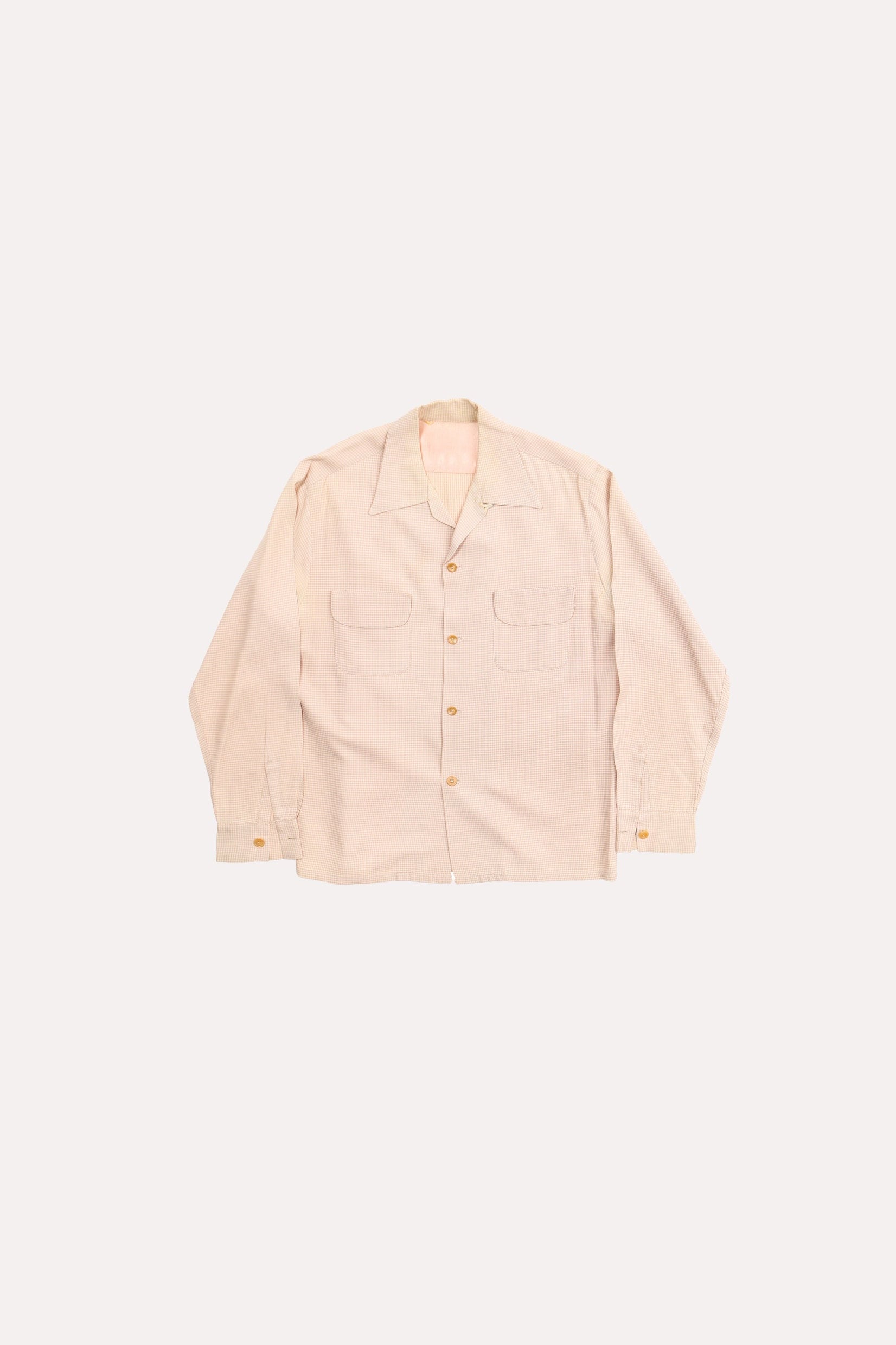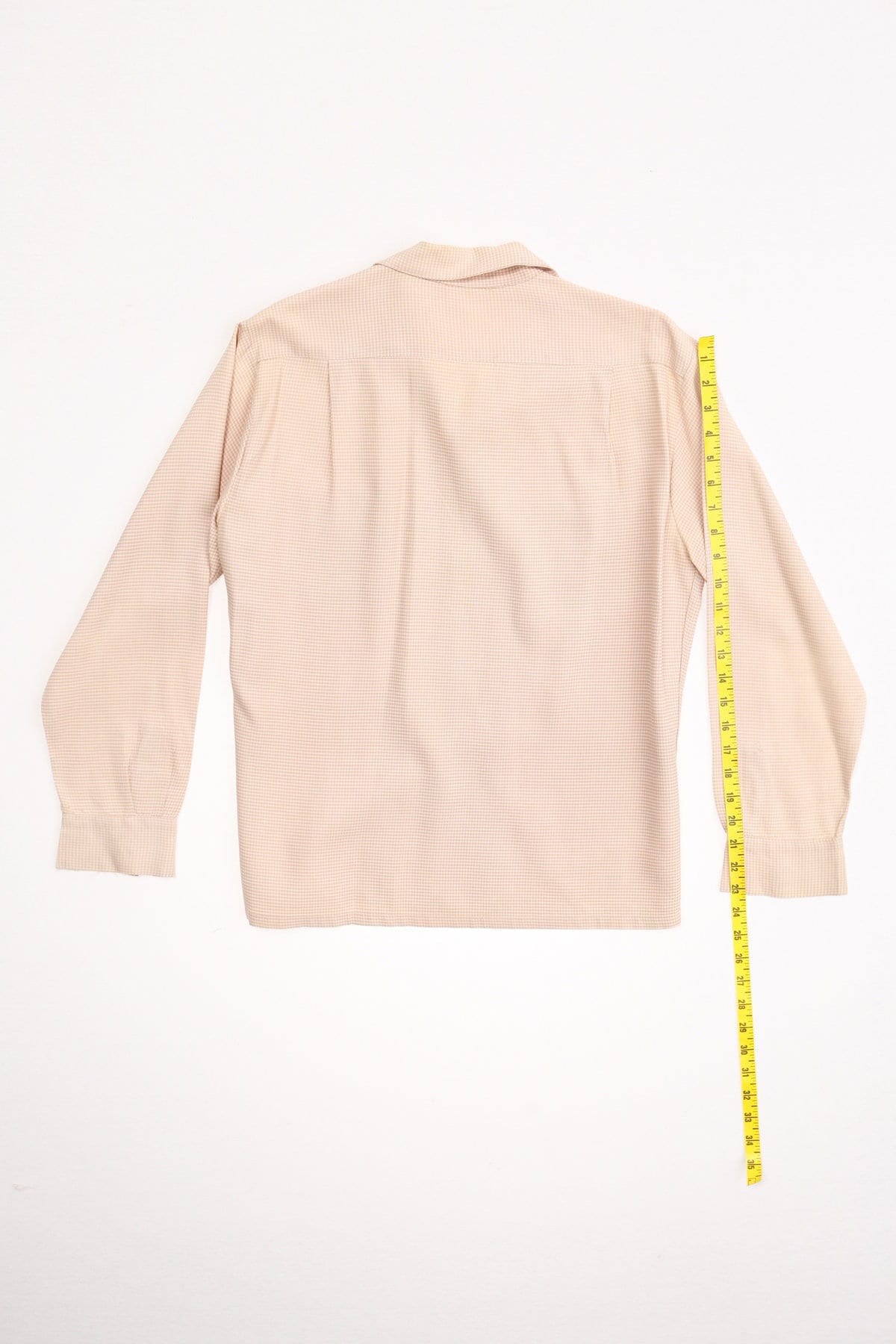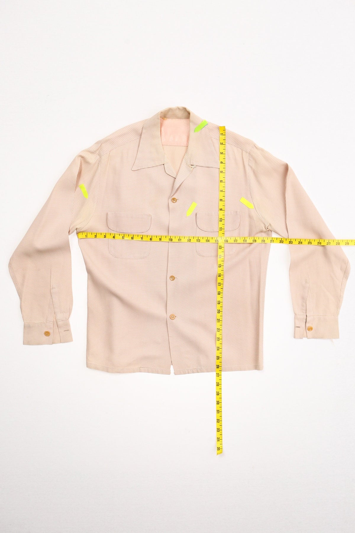 Vintage men 50's 40's casual plaid beige white long sleeve shirt rockabilly