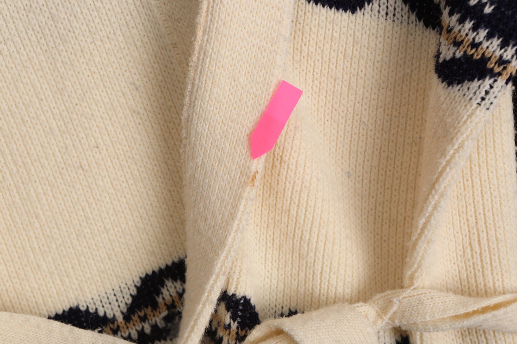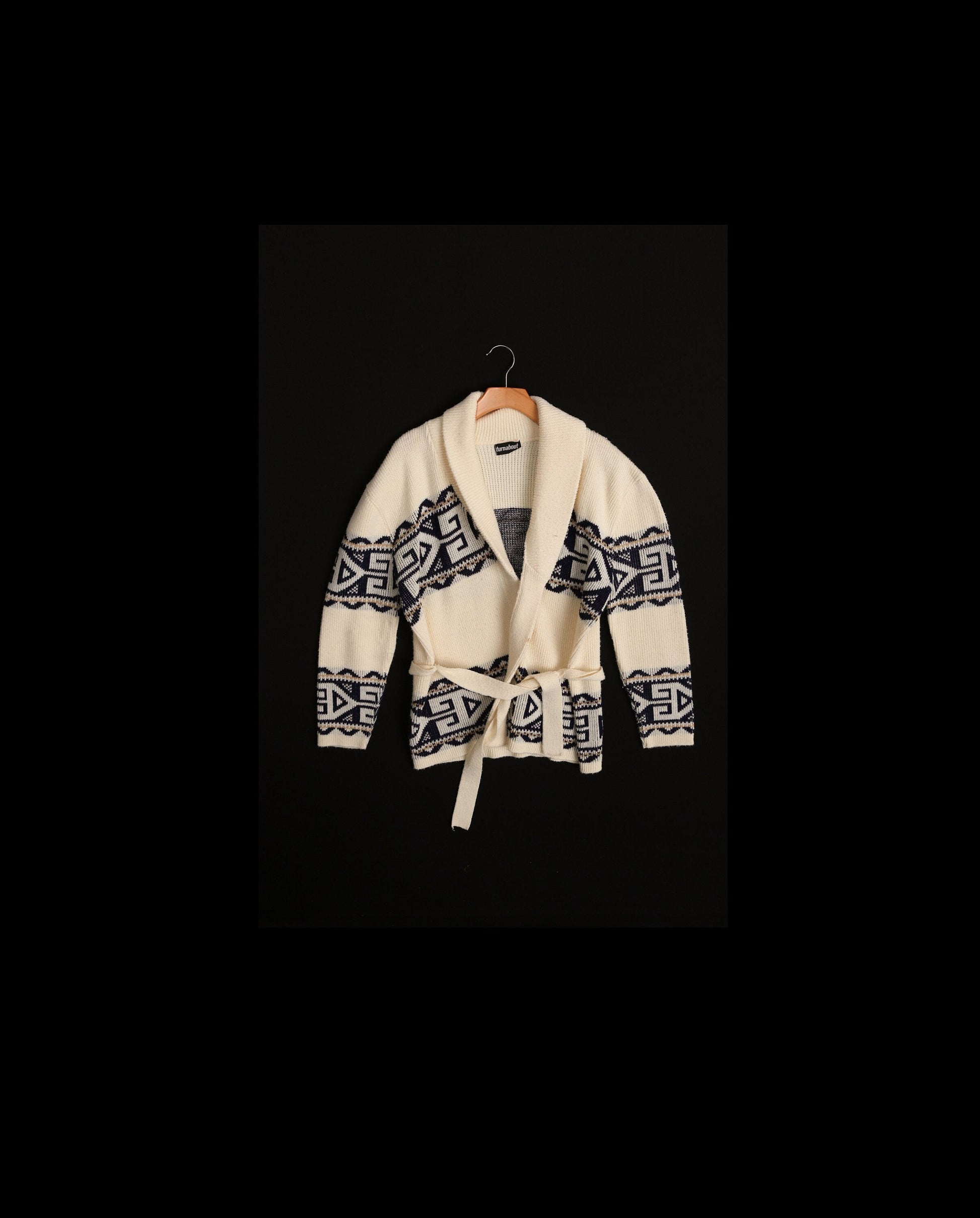 Vintage Men 70's Open Sweater with Waist Belt - Geometric Print