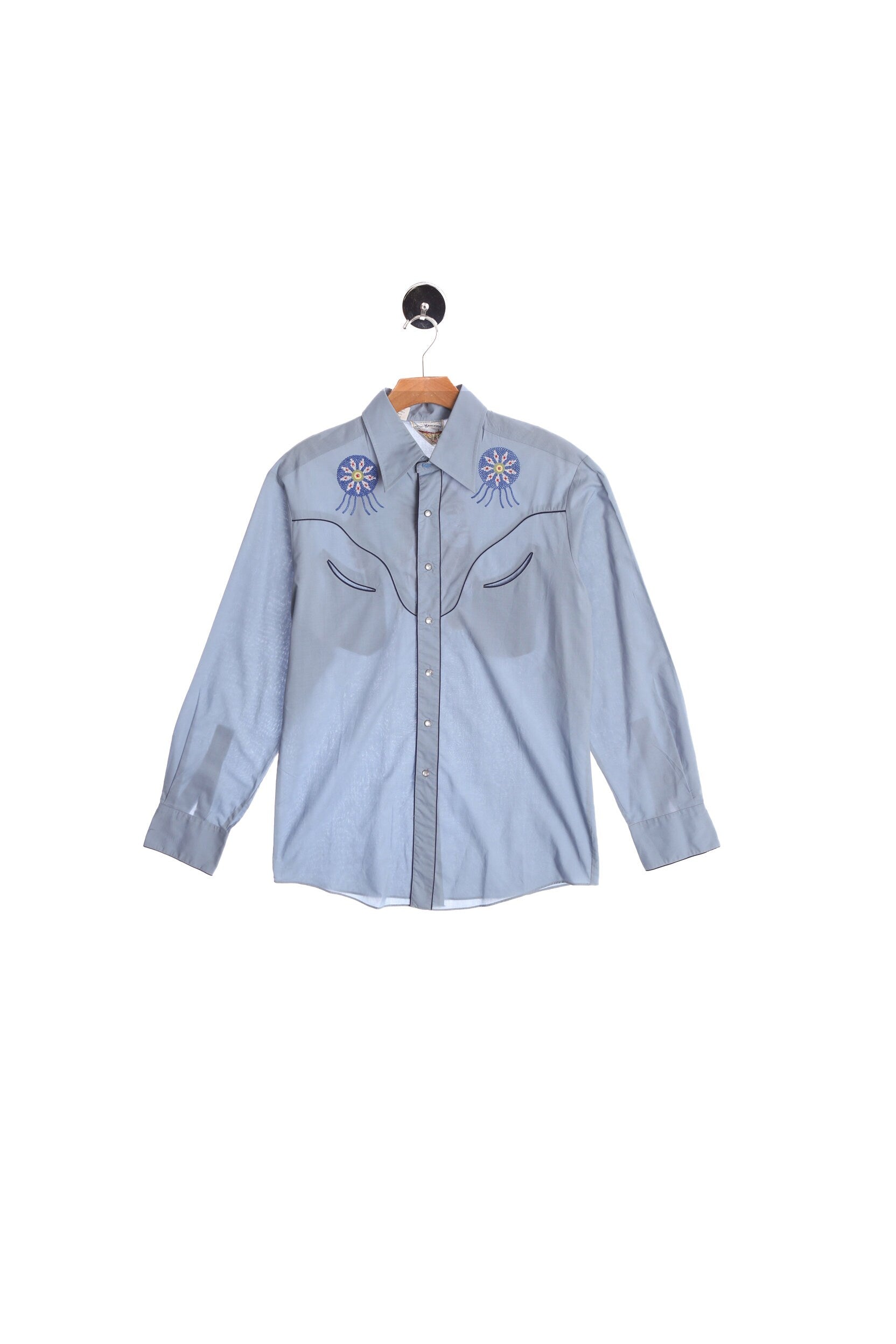 Vintage Men Blue Western Shirt With Native American Chief Embroidery - Rocking K Ranchwear By Kennington