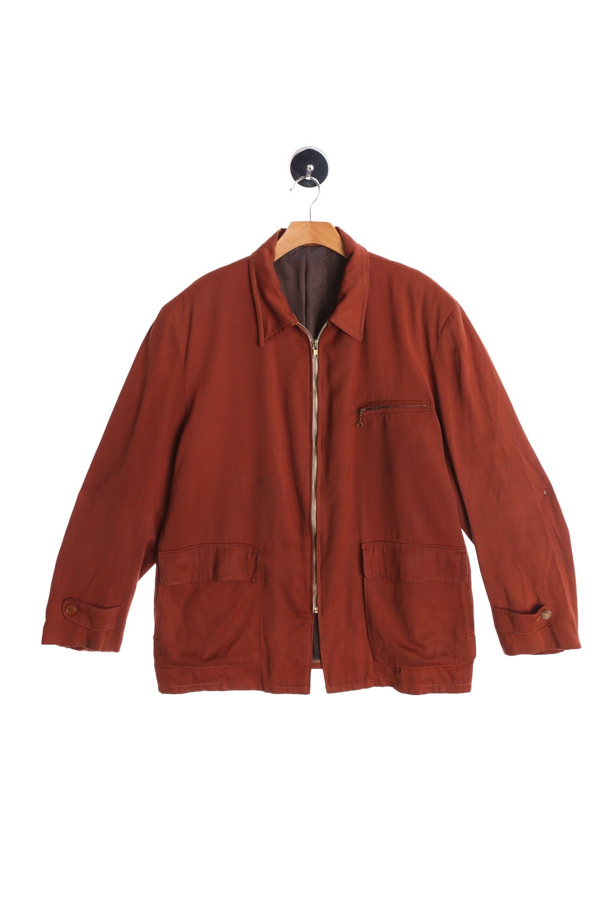 Vintage Men Brown Gabardine Coat - Era 40's - 50's