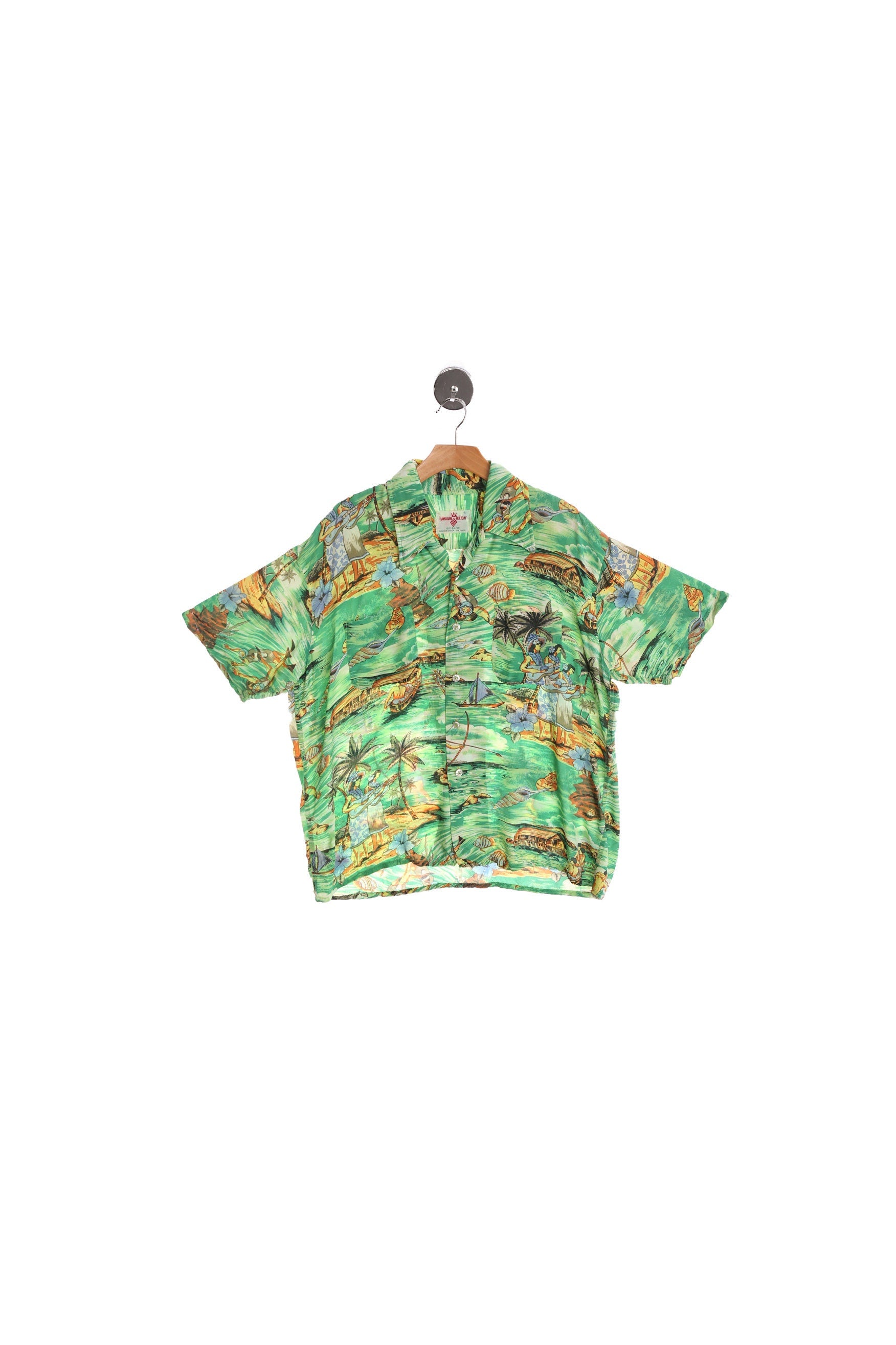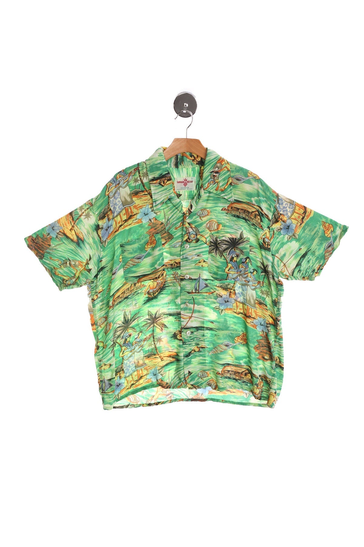Vintage Men Green Hawaiian Shirt - Hawaiian holiday - Made in Korea