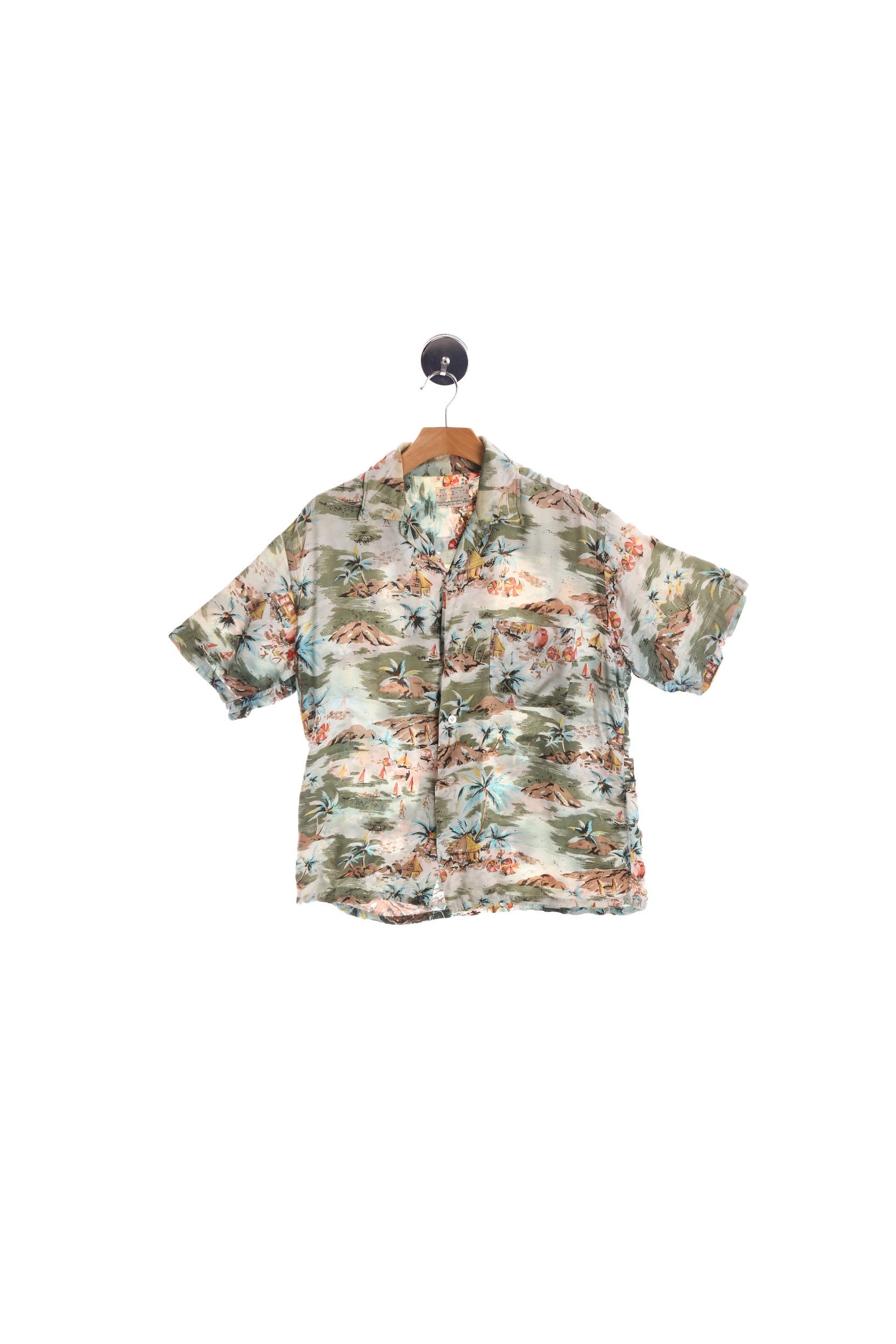 Vintage Men Hawaiian Shirt - Beach Print - Era ( 70's - 80's )
