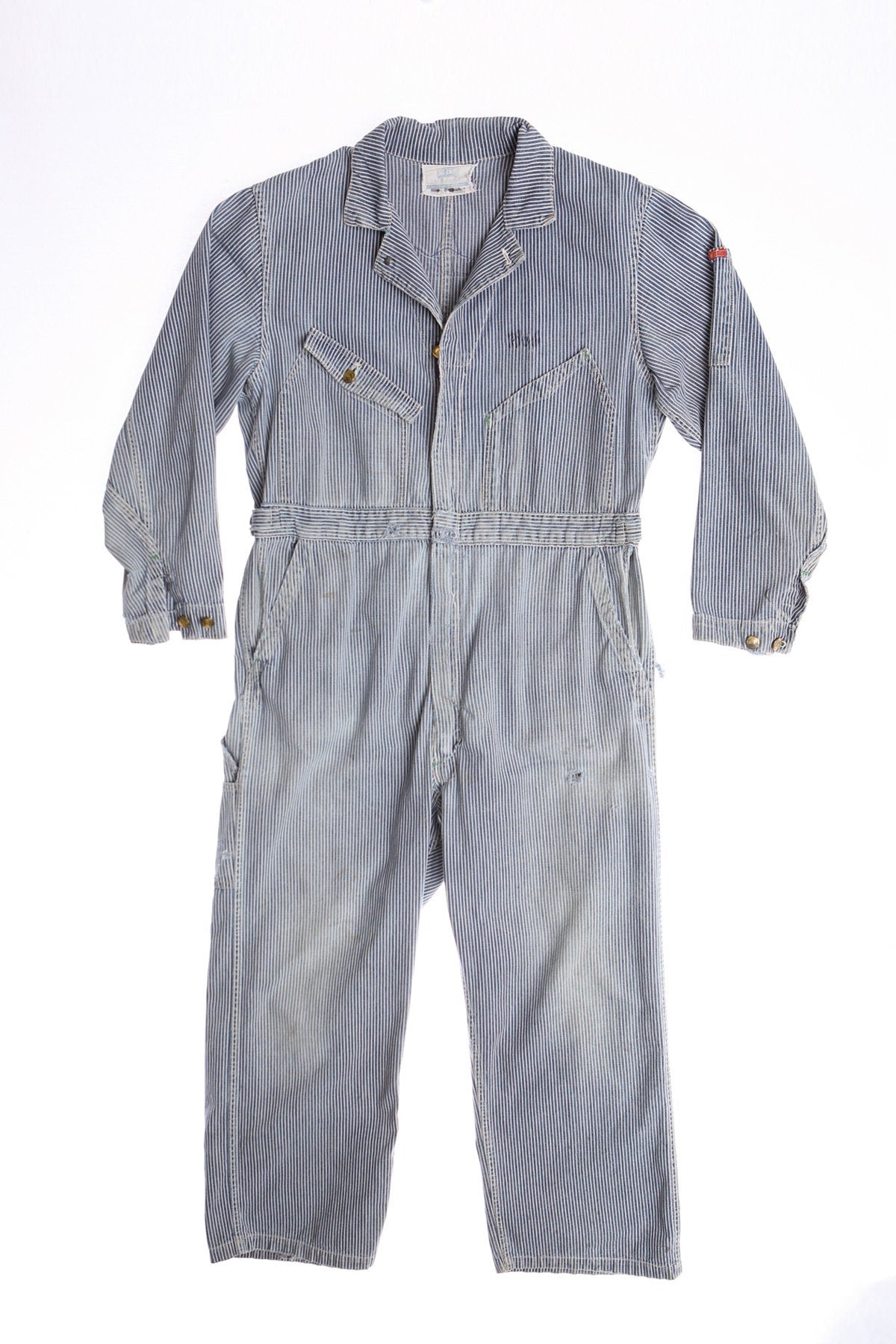 Vintage Men Striped Denim Farmer Styled Work Jumpsuit
