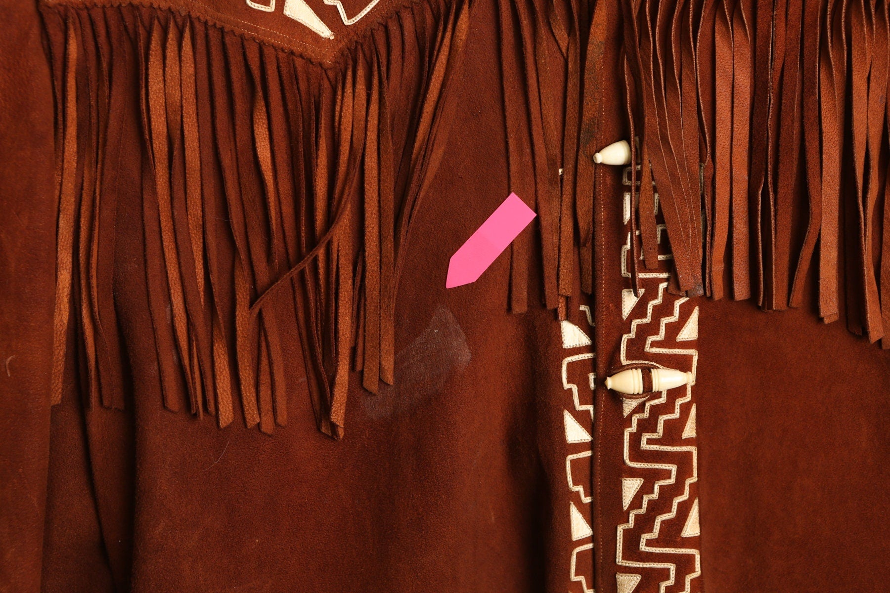 Vintage Men Suede Fringe Jacket with Horse Embroidery - Made in Mexico