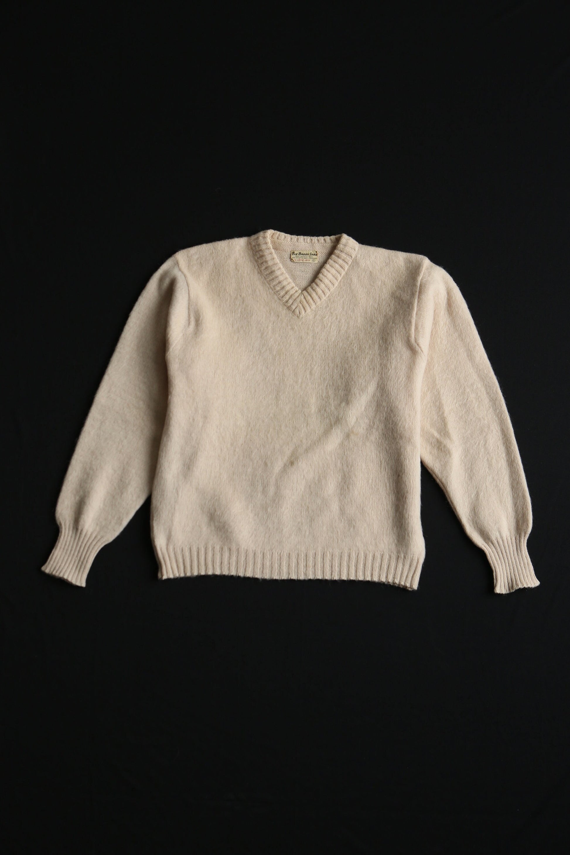 Vintage men sweater mohair 50's 40's beige v neck casual lord jeff l