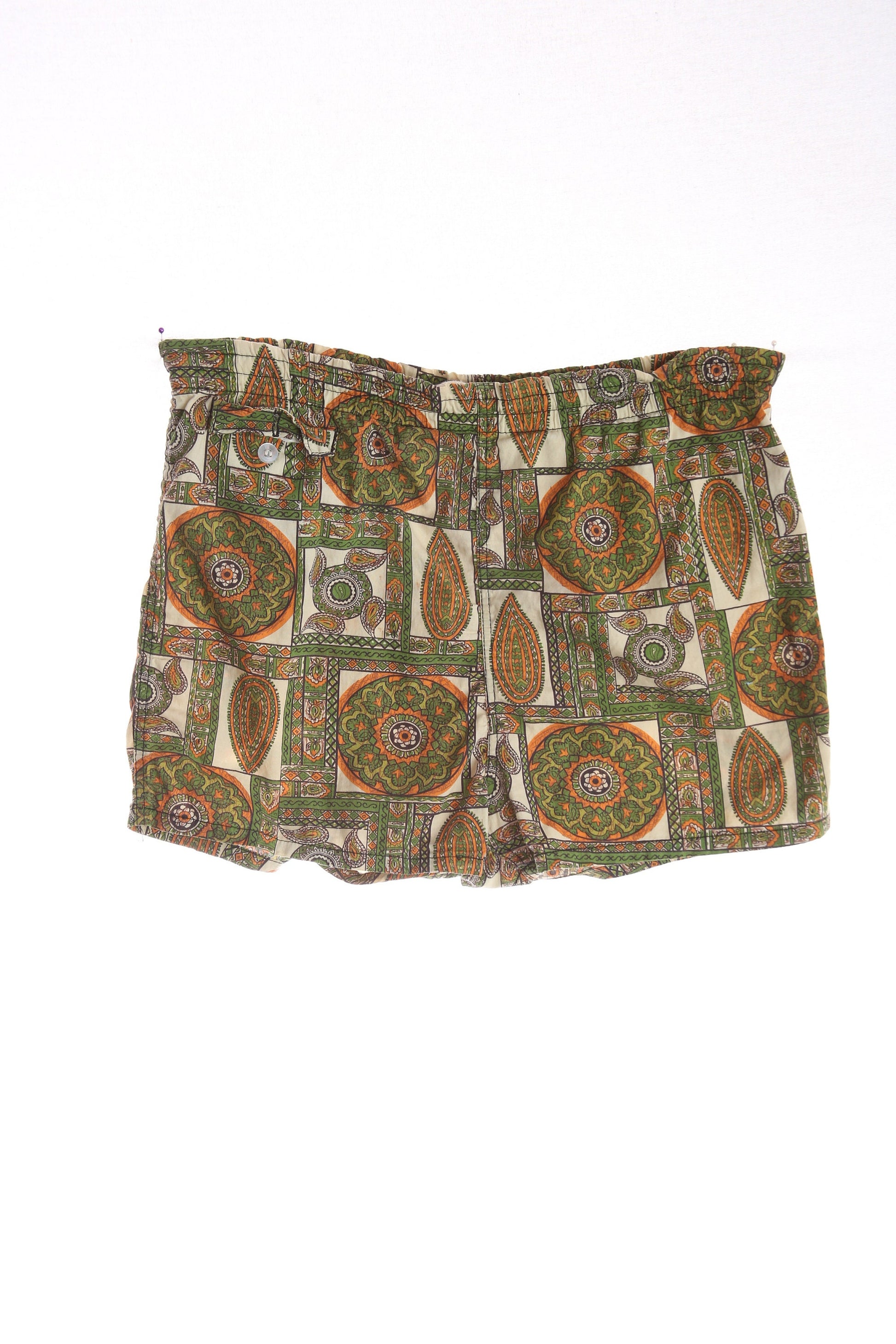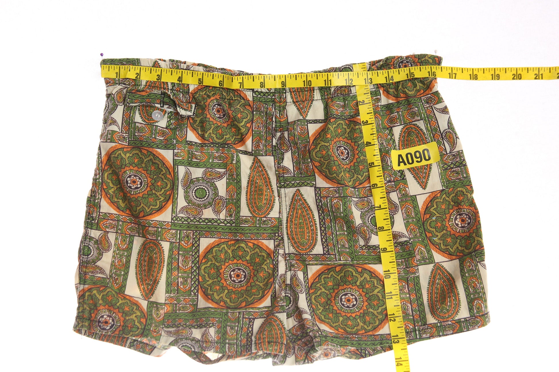 Vintage Men Swim Trunks with Green Paisley Hawaiian Print Estimated Era 1940's - 1950's