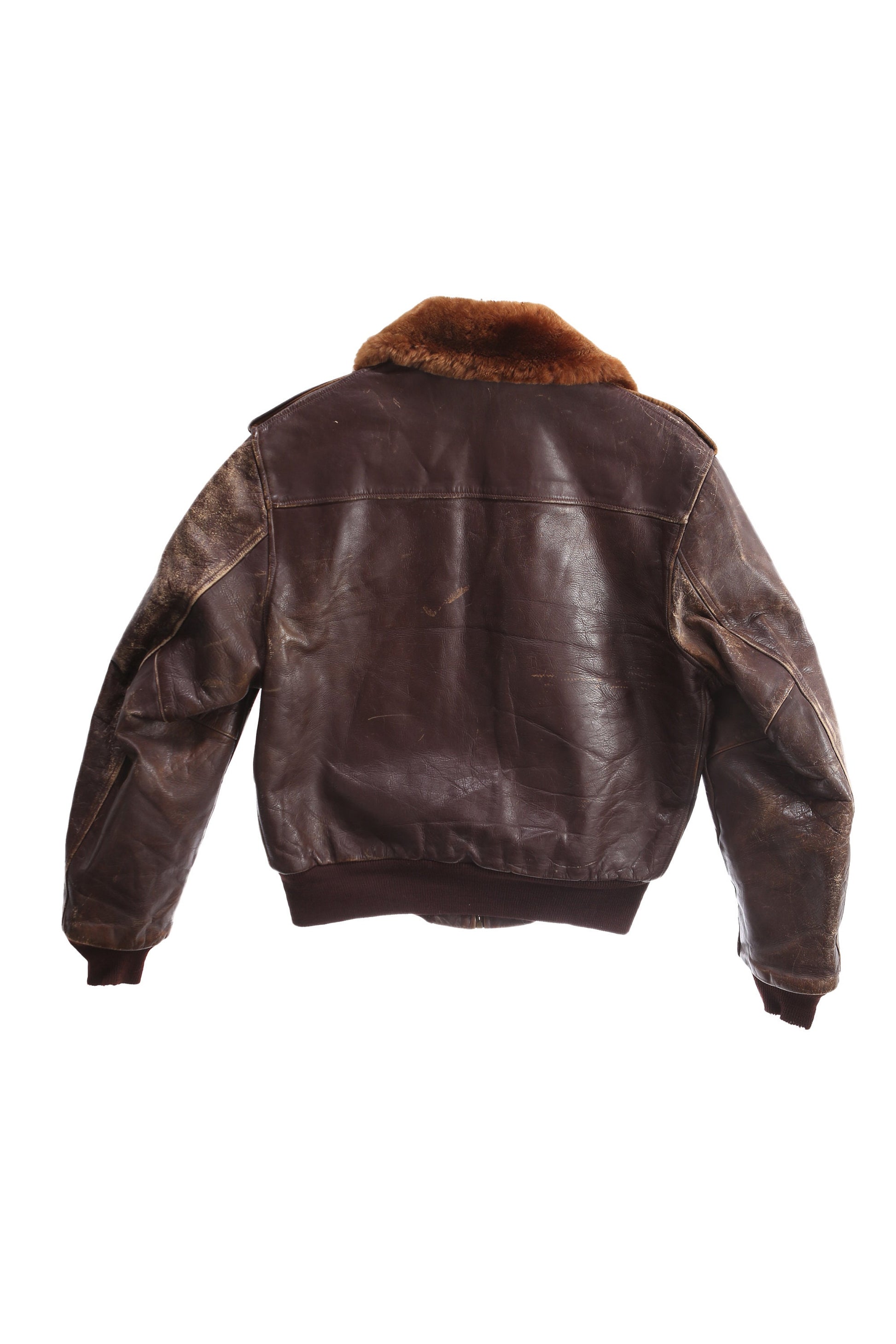 Vintage Men's Brown Leather Bomber Jacket with Fur Collar by Kiropf Sportswear - Estimated Era 1940's - 1950's