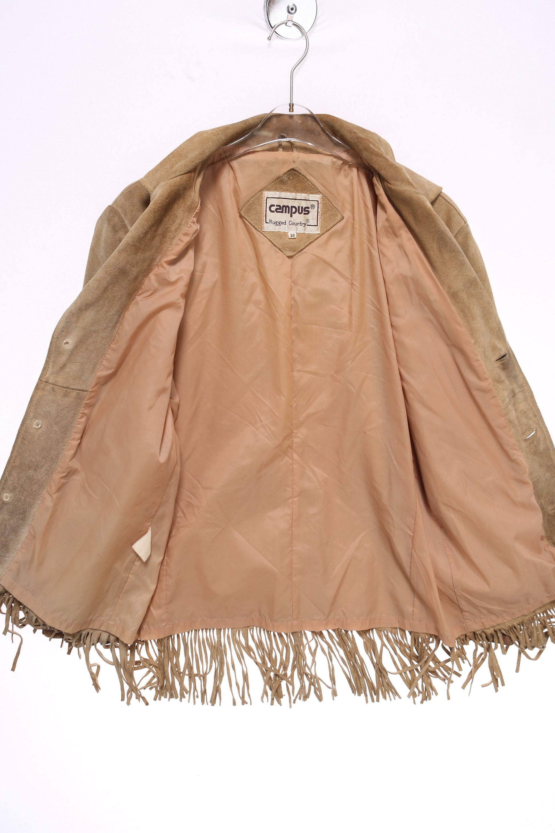 Vintage Fringed Jacket / Suede / Western / 1980s / Tan / Americana / Cowboy /