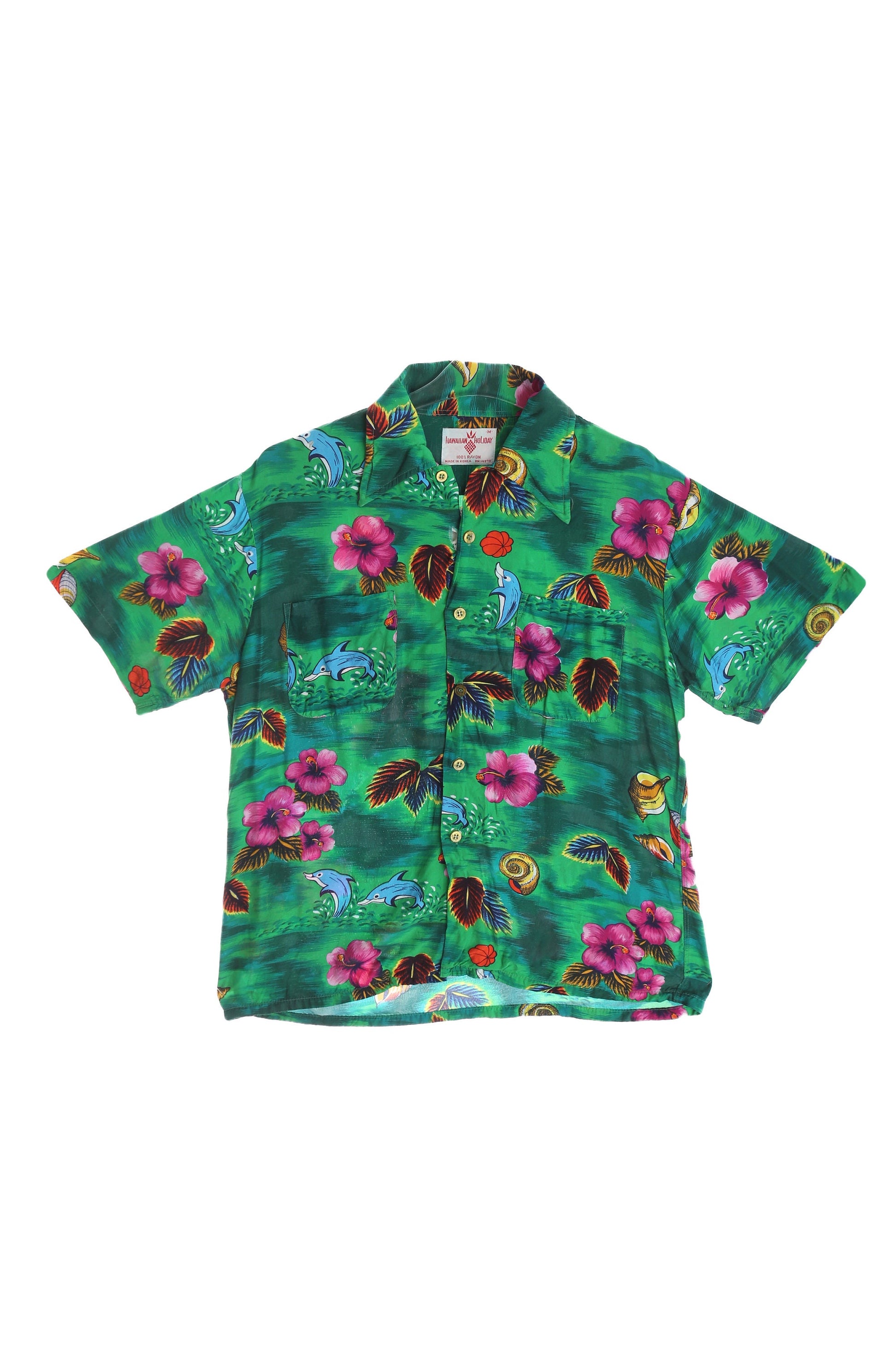 Vintage Men's Green Hawaiian Shirt by Hawaiian Holiday / Era 70s - 80s