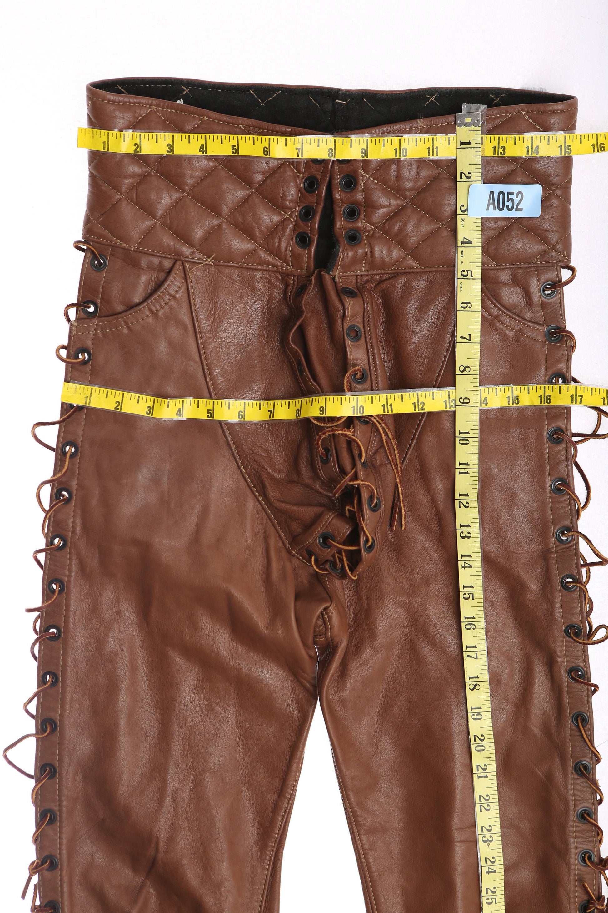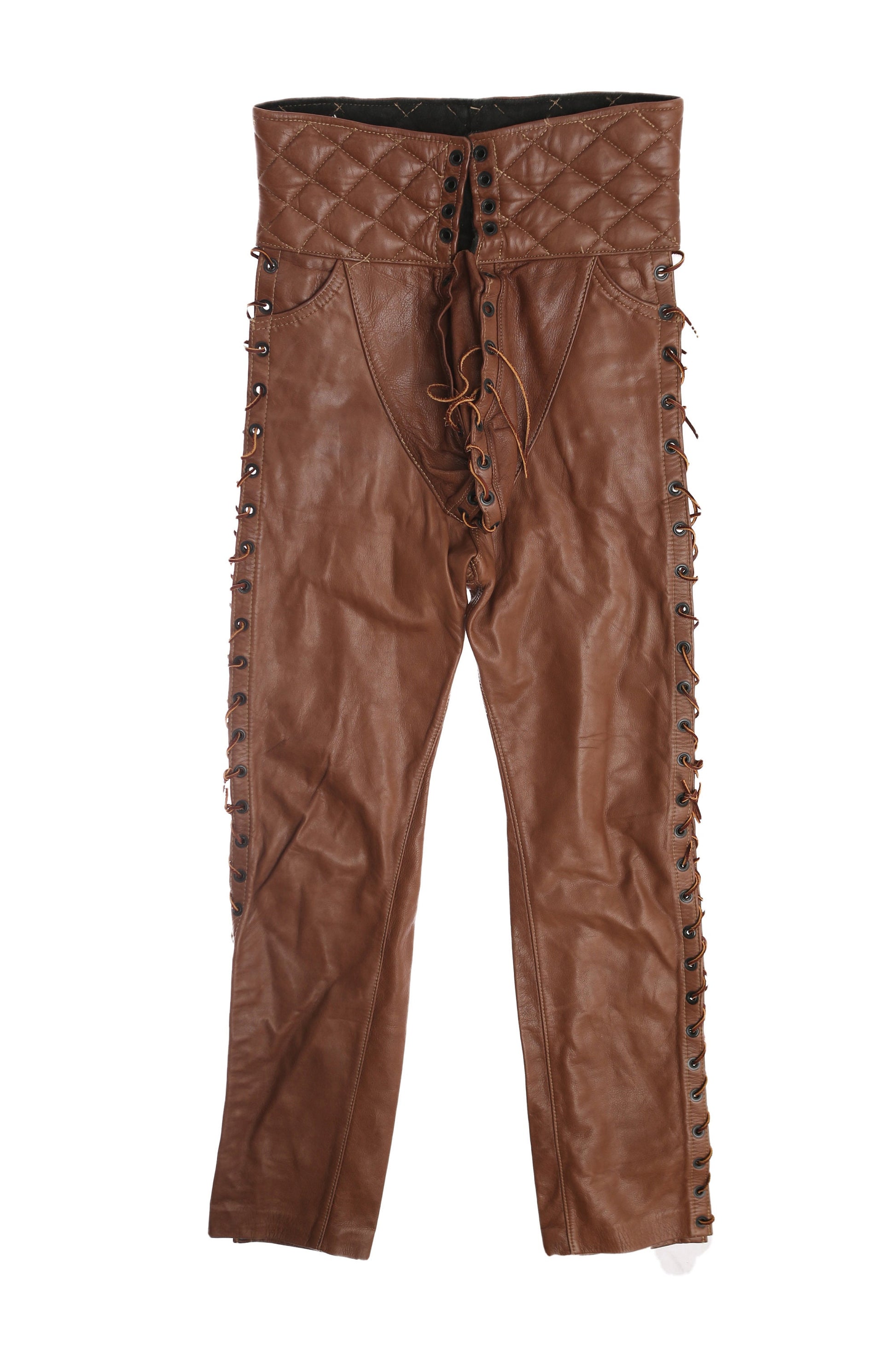 Vintage Men's High Waist Leather Born Pants with Side String Closures