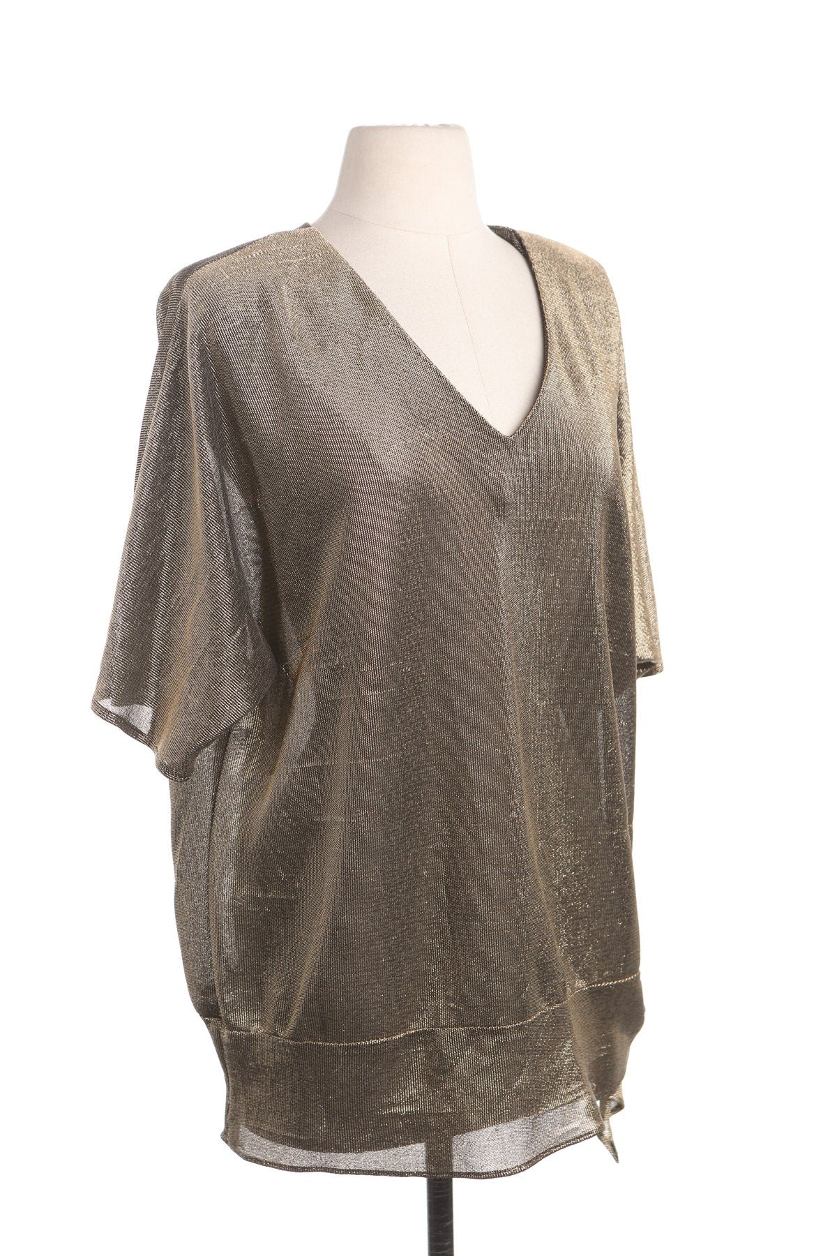Vintage Metallic Gold V Neck Top - Studio 54 Style - Era 70's - 80's