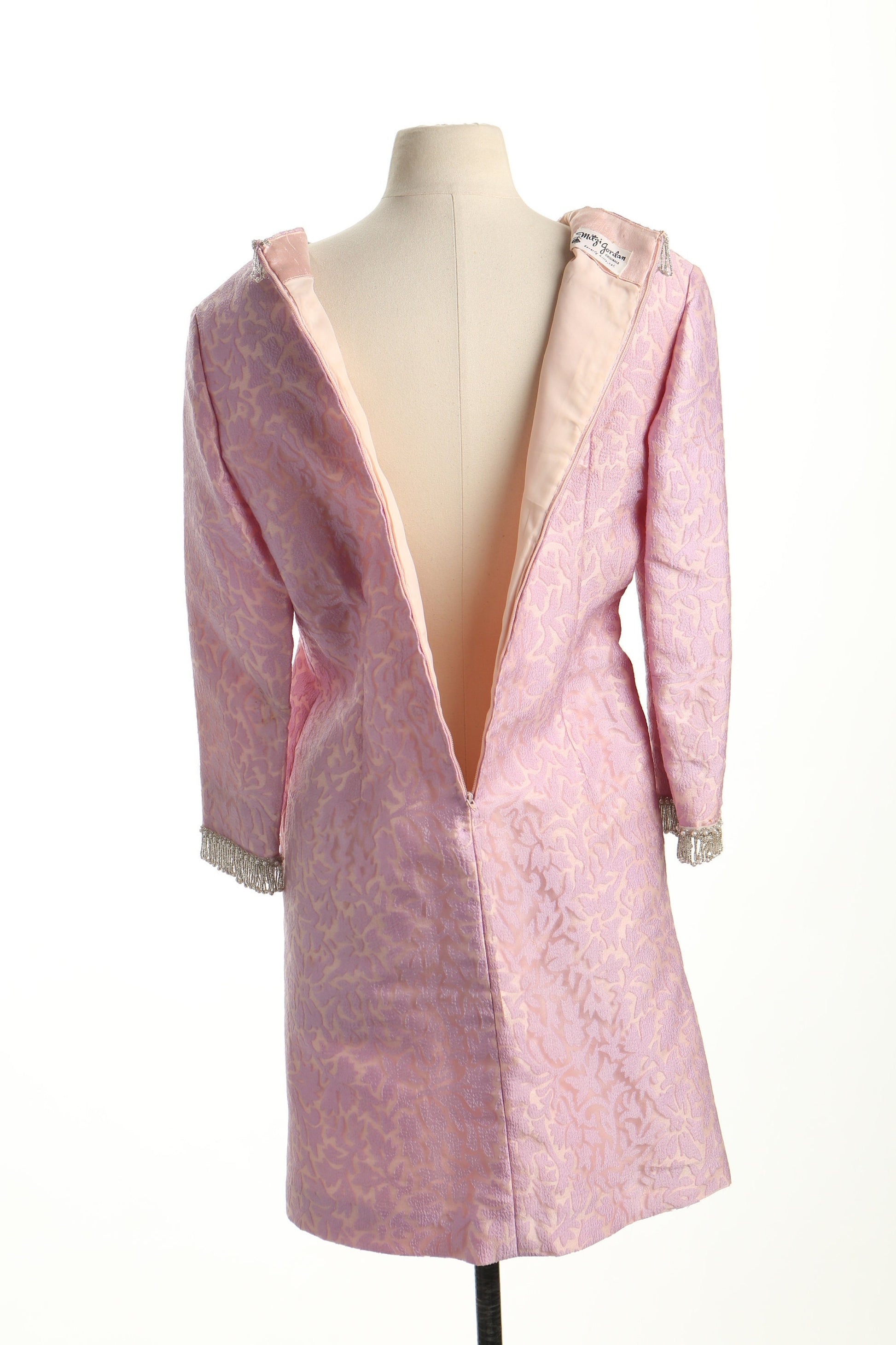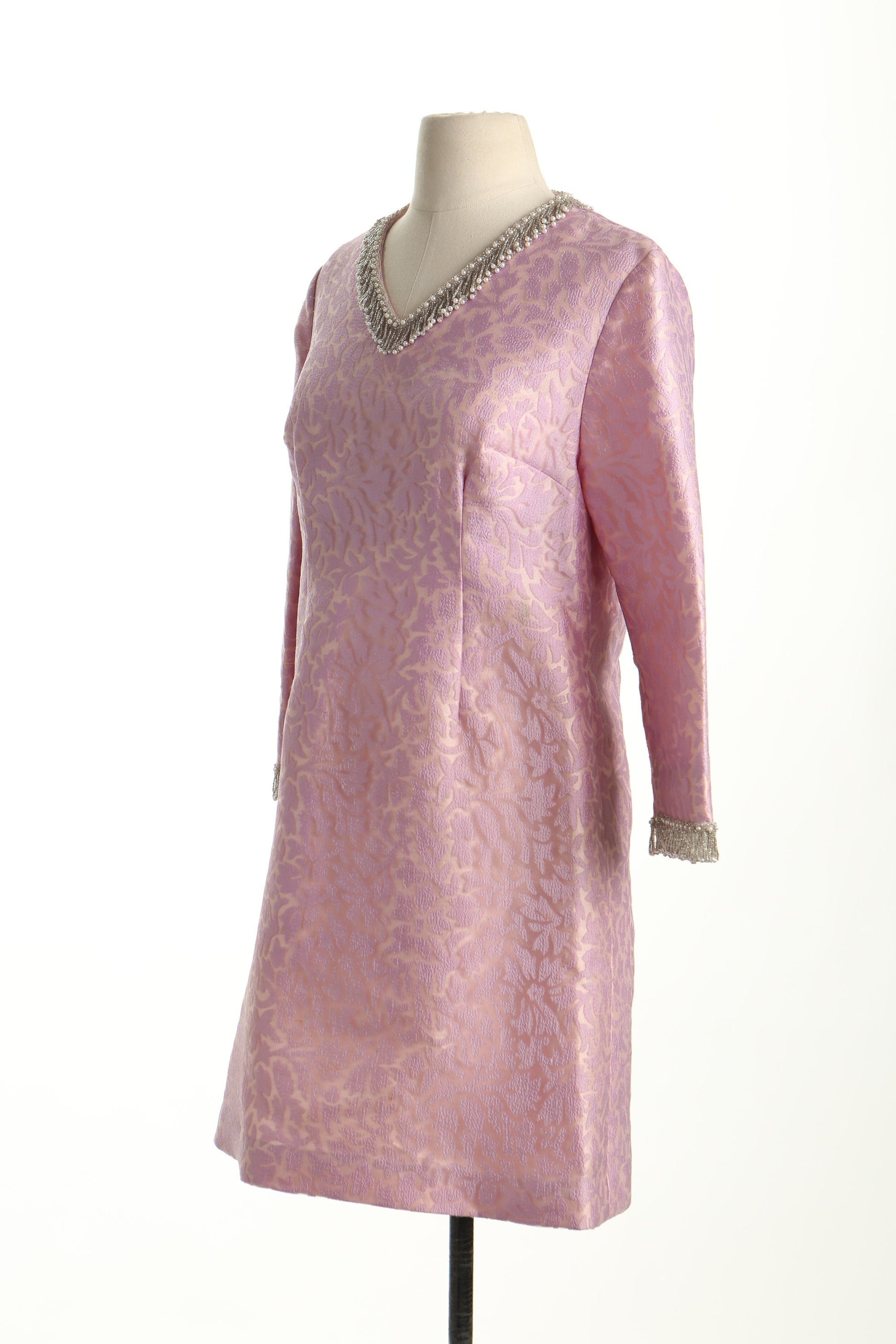 Vintage mod casual pink dress 60's 70's evening women pearl fringe mitzi jordan beverly hills