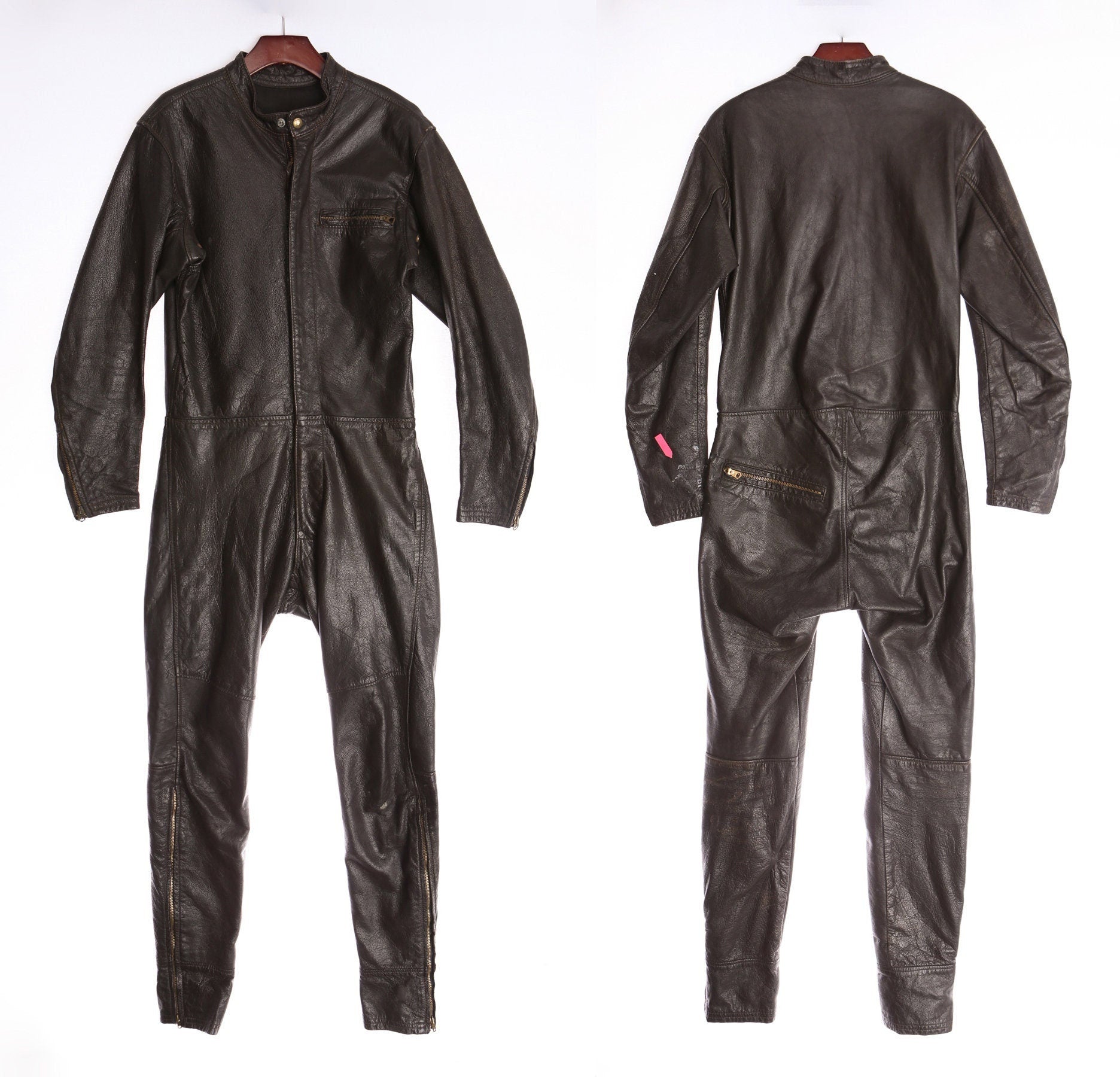 Vintage Motorcycle Drag Racing Brown Leather Jumpsuit