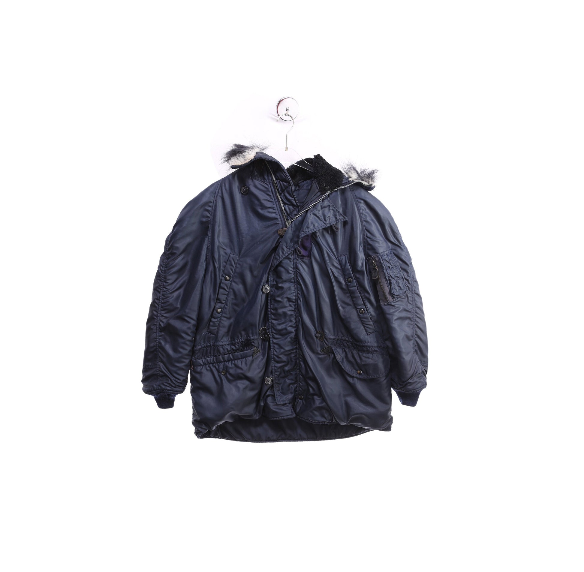 Vintage N-3A Blue USAF Parka with Fur Hood Seam - Estimated Era 1970's - 1980's