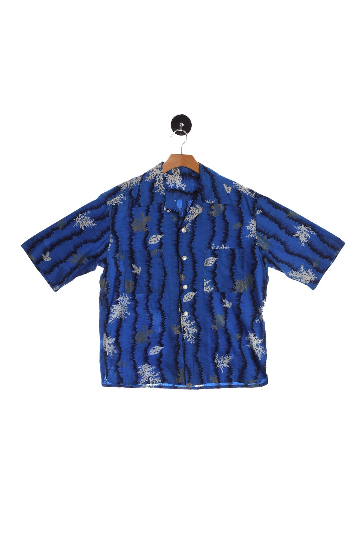 Vintage Navy Blue Men's Hawaiian Shirt With Sea Print Features