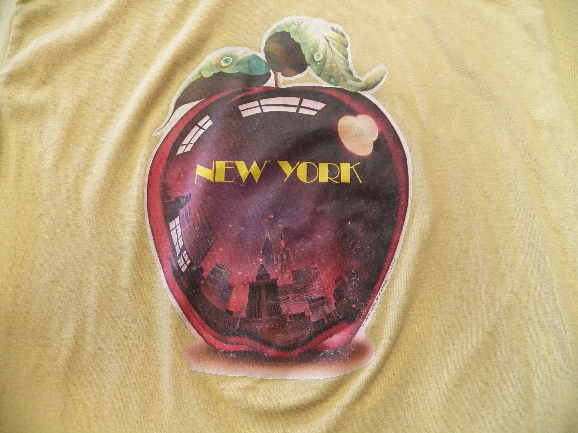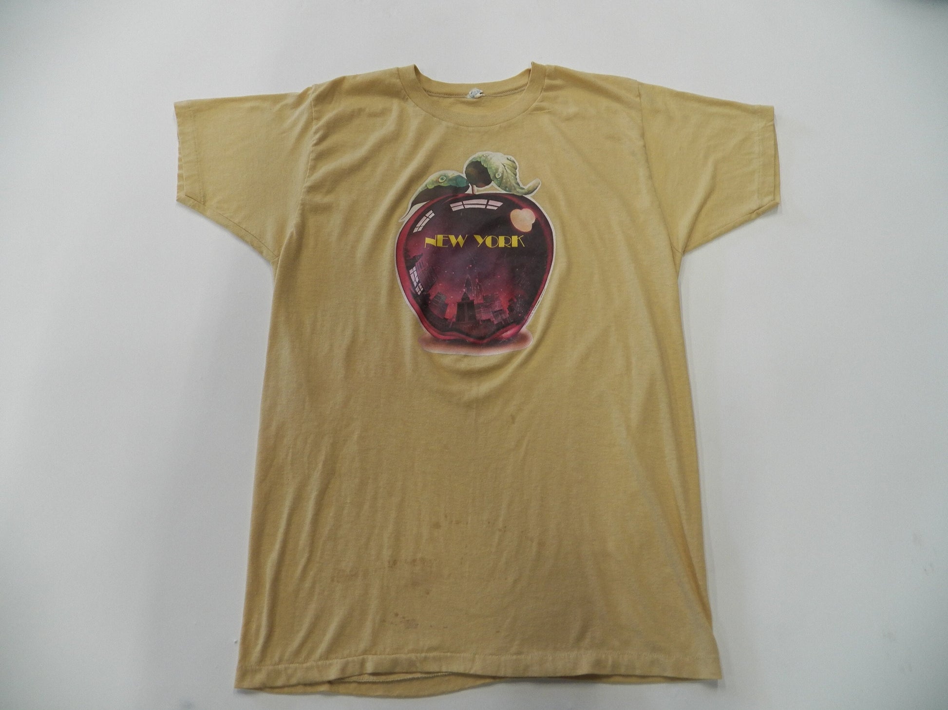 Vintage new york apple graphic t-shirt new york city beige 70's