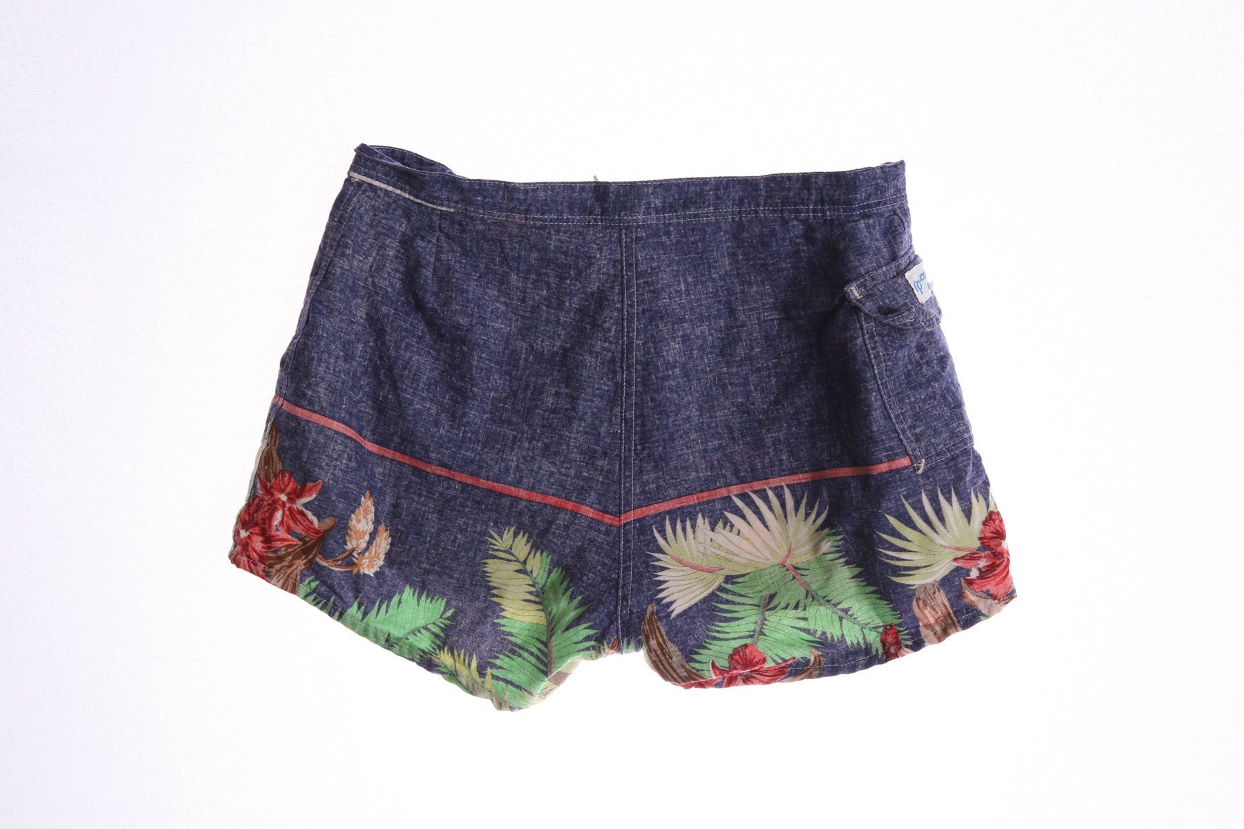 Vintage Op Ocean Pacific Swim Trunks With Plants Print and String Closure