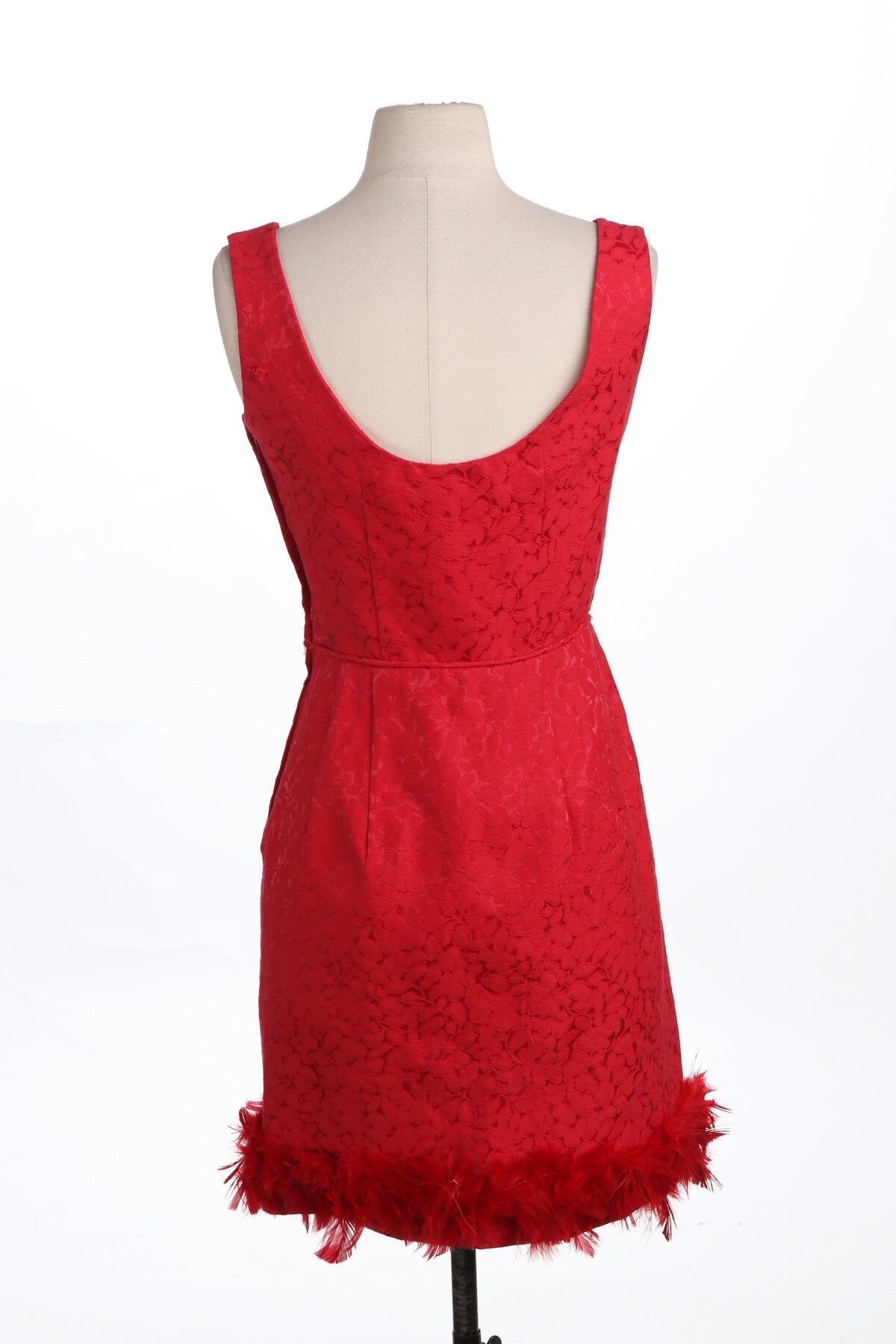 1950s Red Evening Dress / Sleeveless / Feathered Design