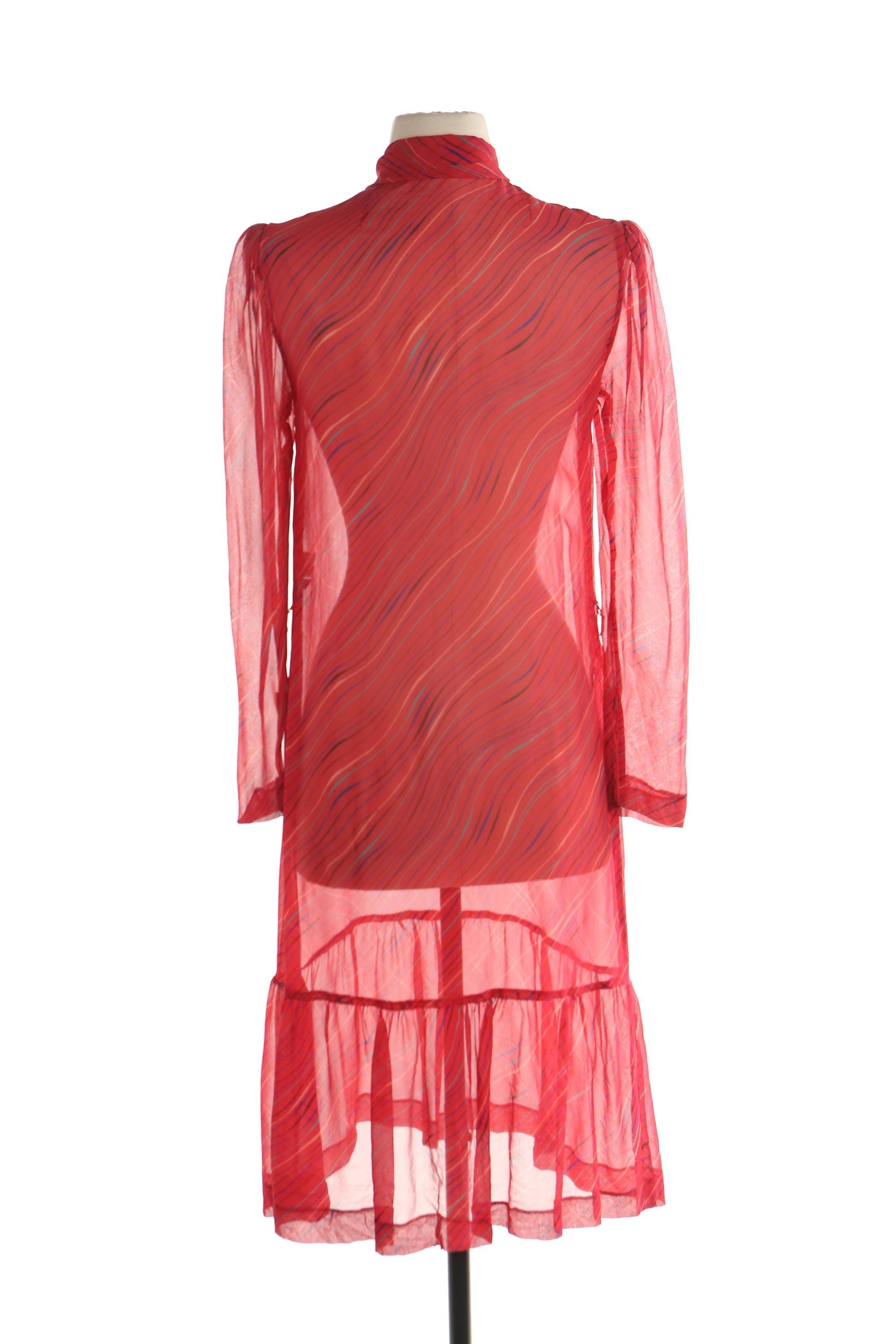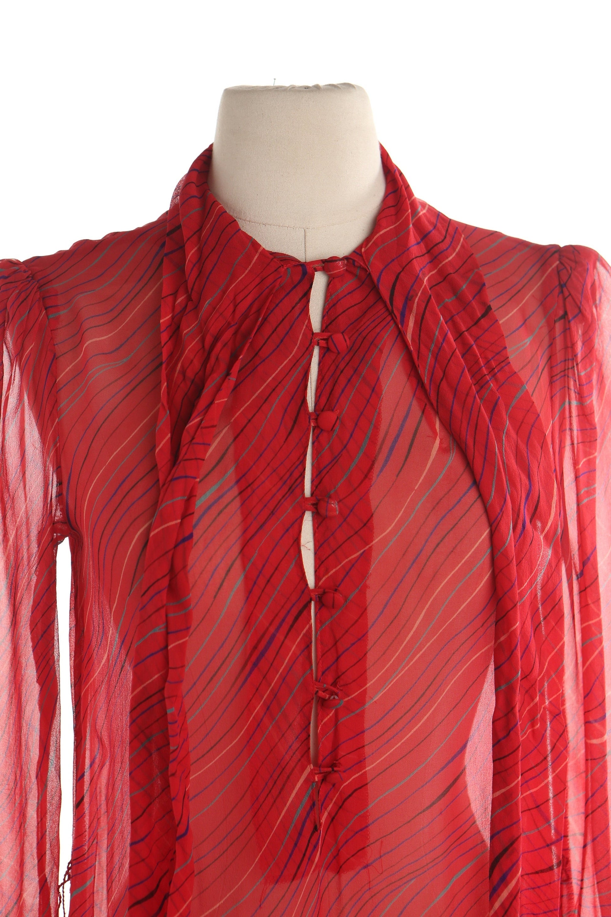 Vintage red striped long sleeve guy laroche made in france designer women sheer