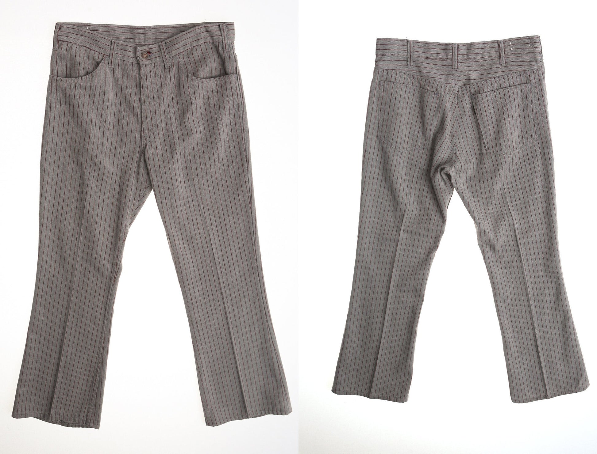 Vintage striped levi's pants men hippie bell bottom gray boho rare polyester