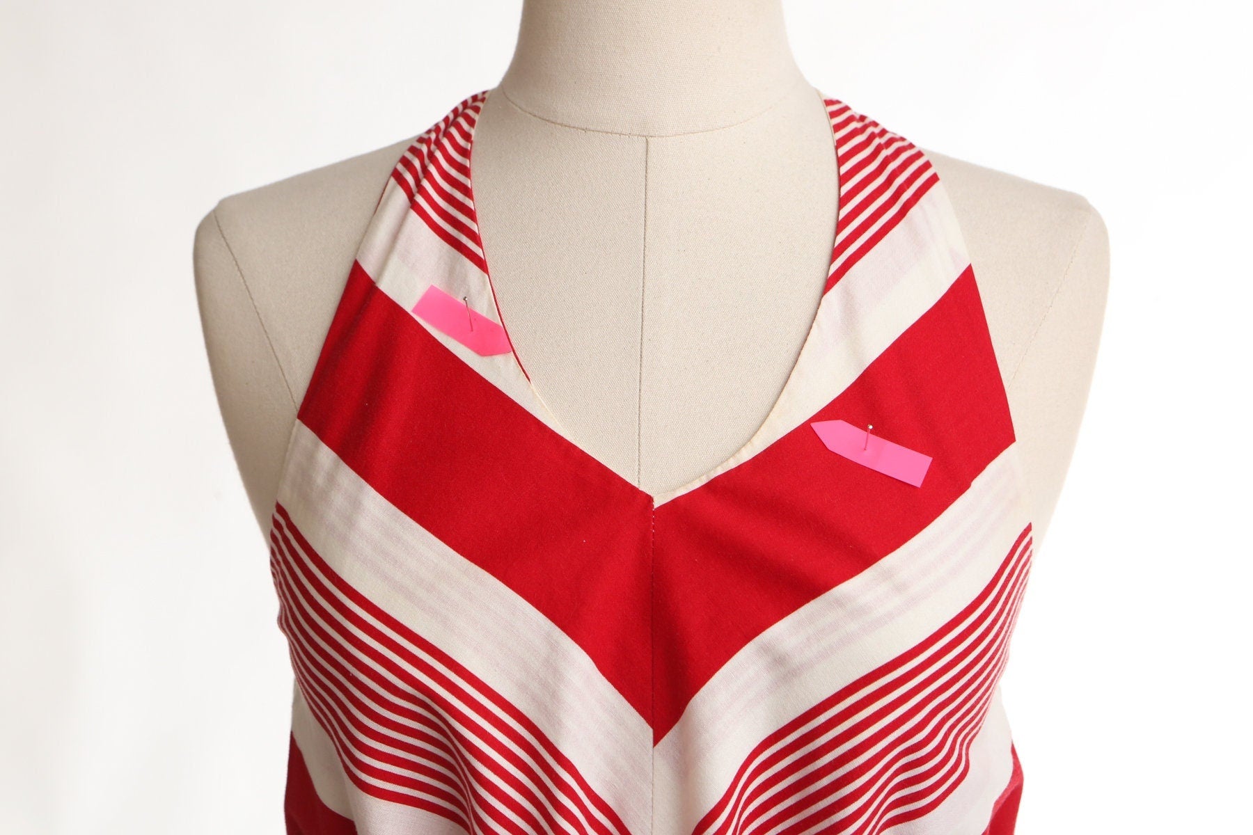 Vintage striped red halter dress 80's 70's cotton summer casual women
