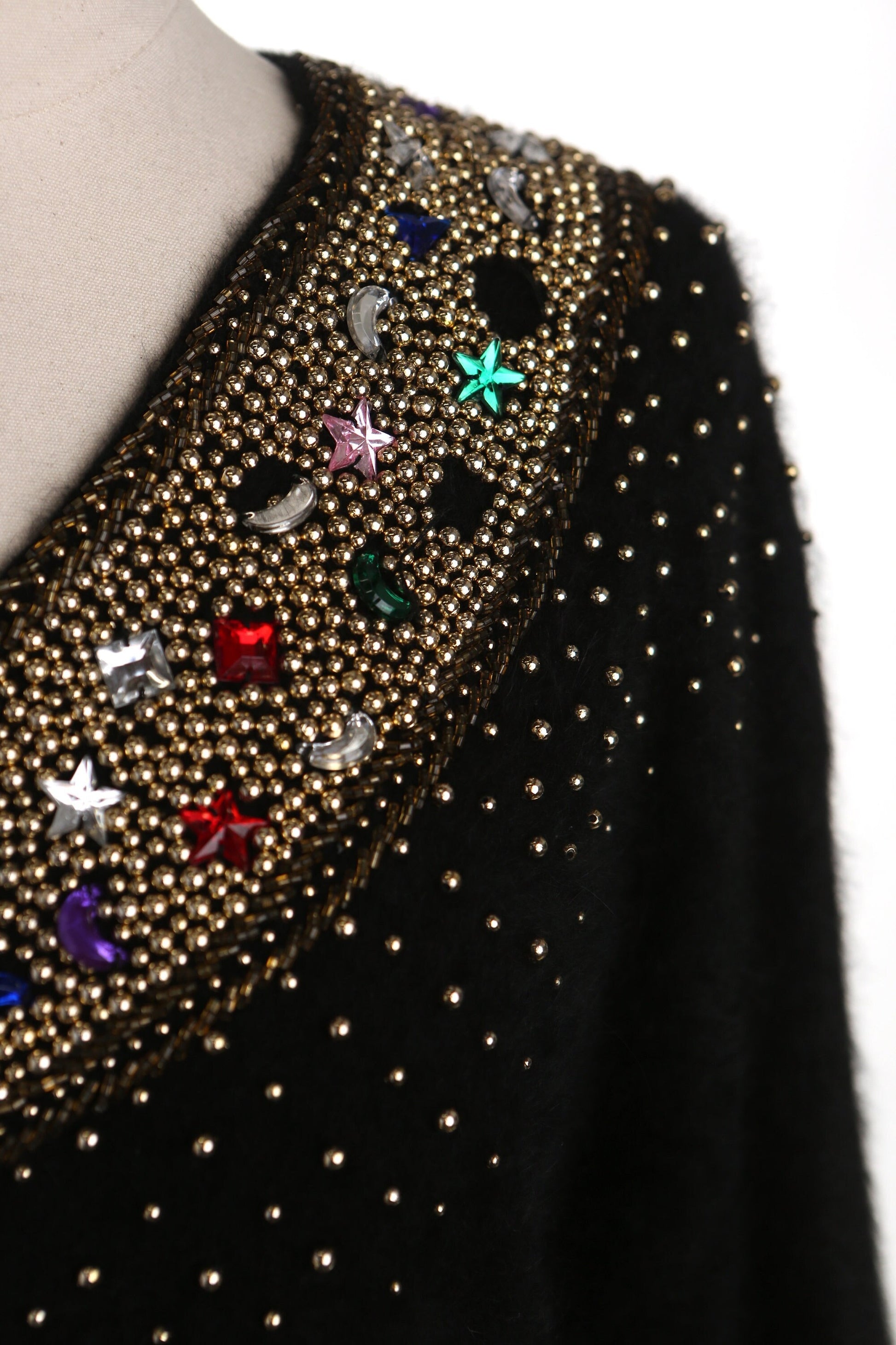 Vintage sweater dress rhyme stones studded golden black evening women v neck casual 90's 80's