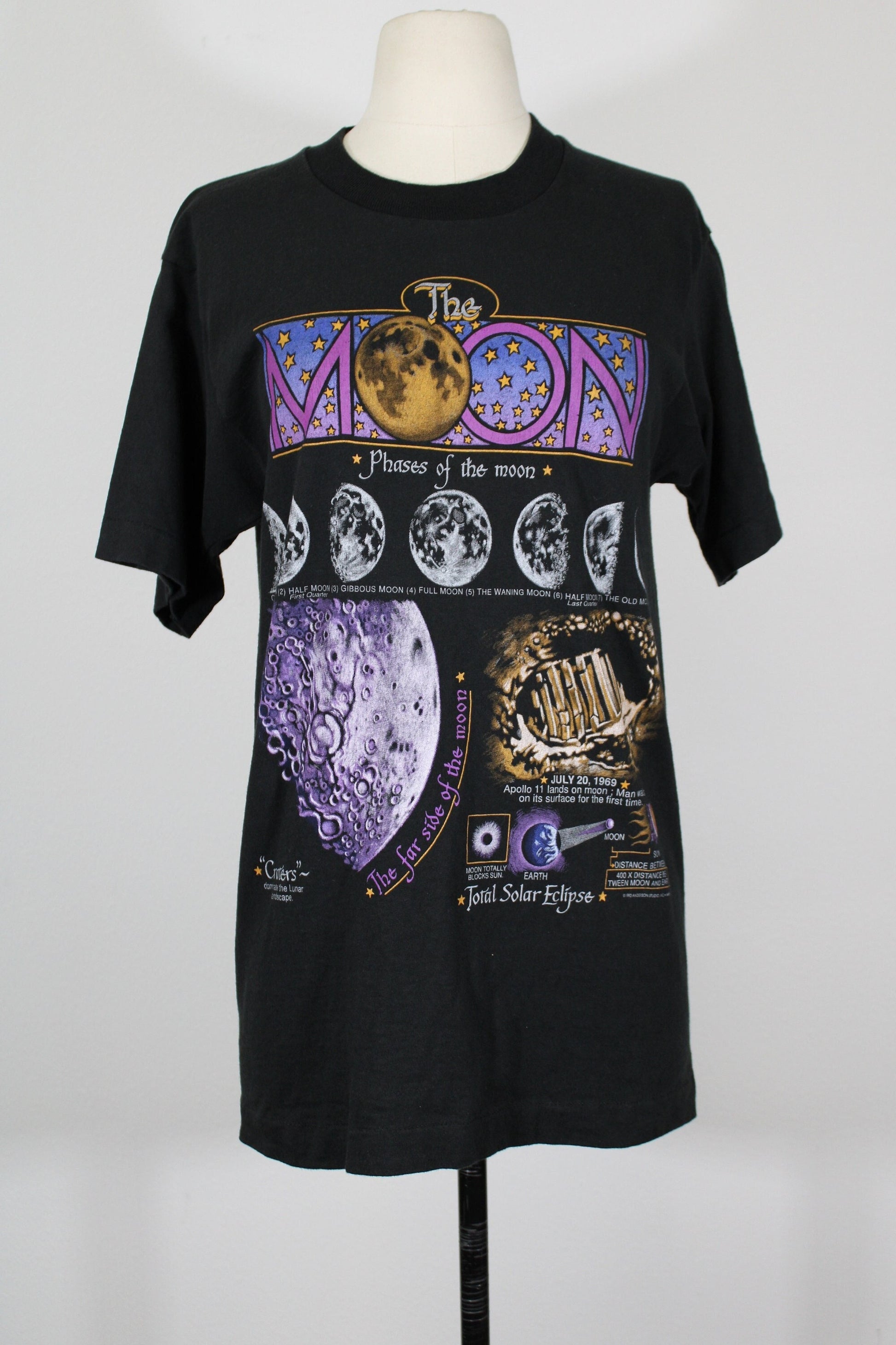 Vintage t-shirt phases of the moon solar eclipse july 20 1969 moon graphic rare black apollo 11 anderson studio inc 1993
