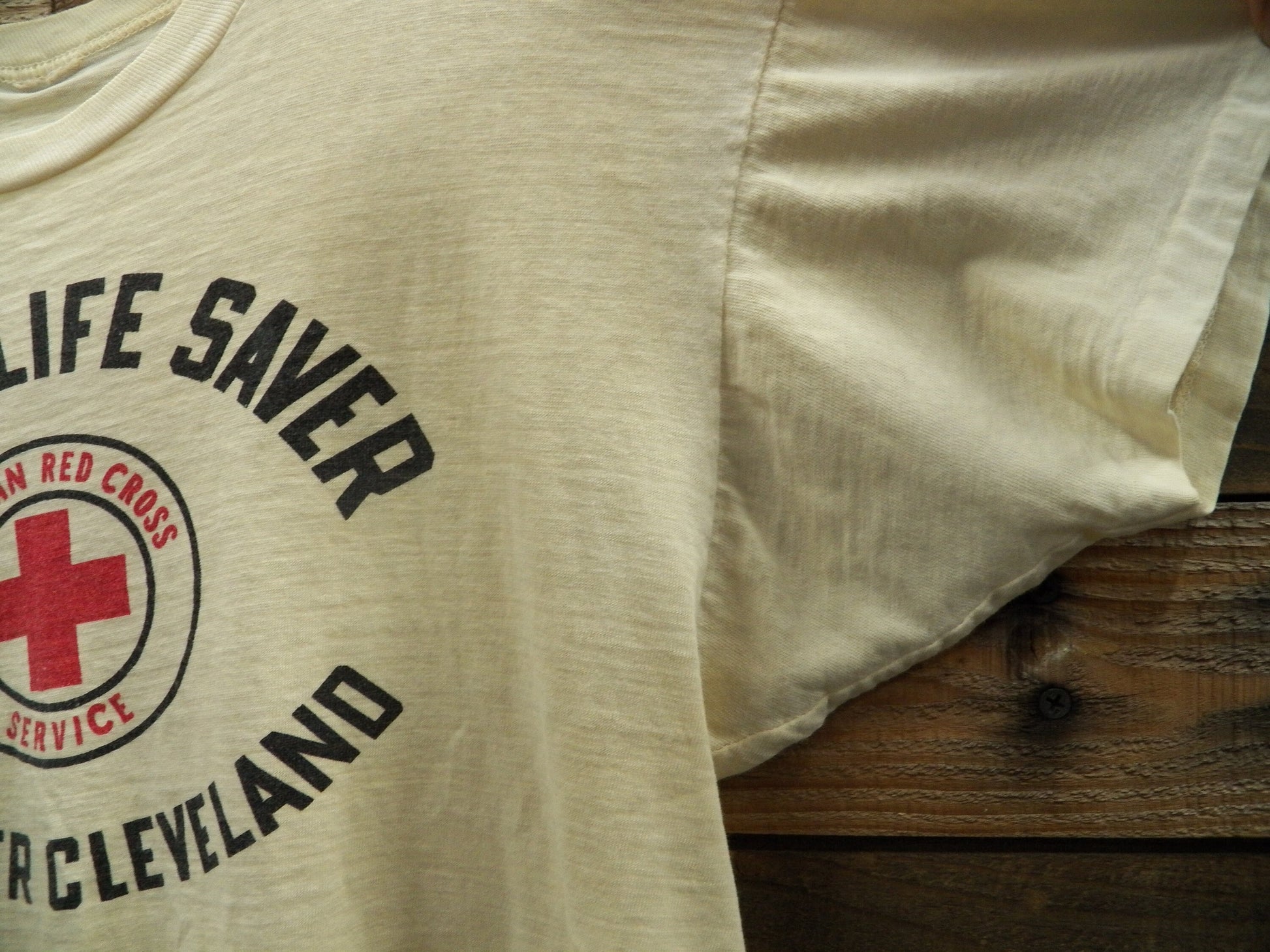 Vintage t-shirt senior life saver greater cleveland american red cross white red black no label single stitch