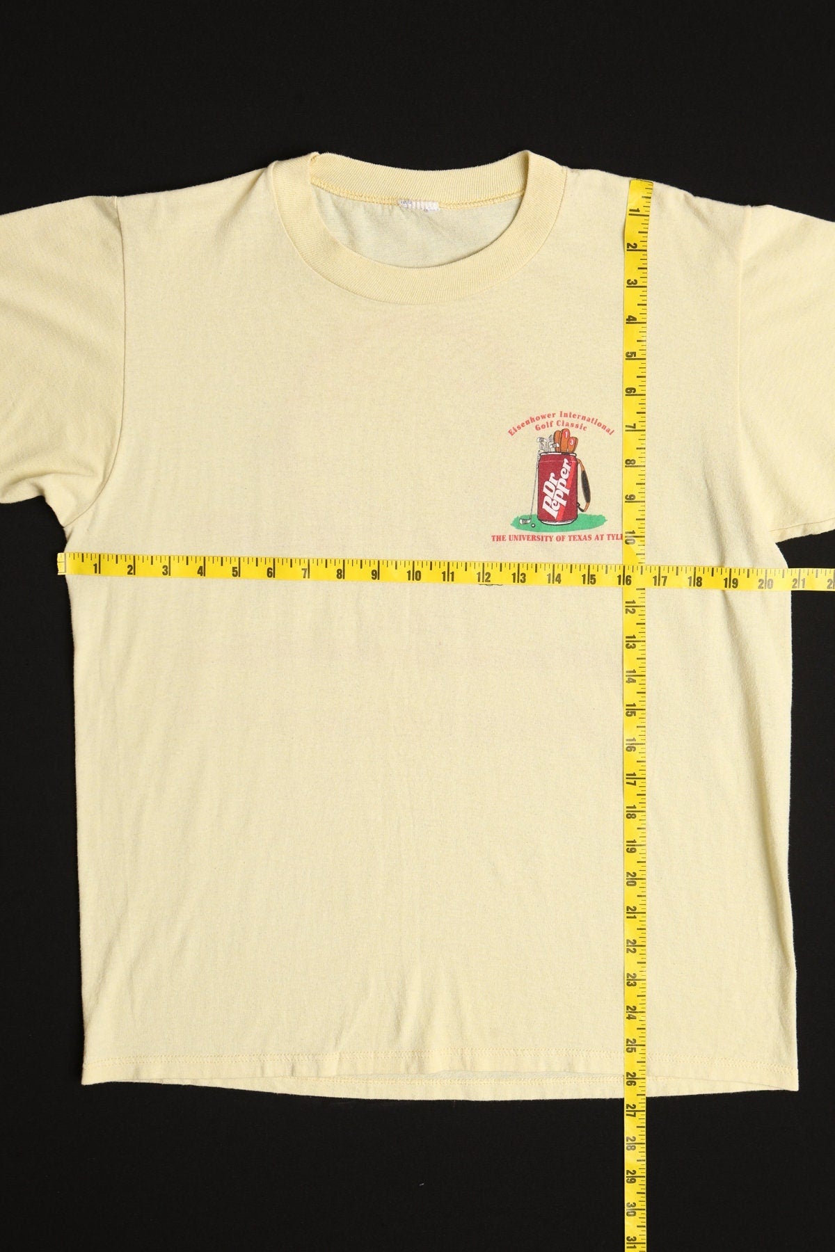 Vintage texas dr pepper iniversity scholar tyler eisenhower international vintageshirt yellow 80's