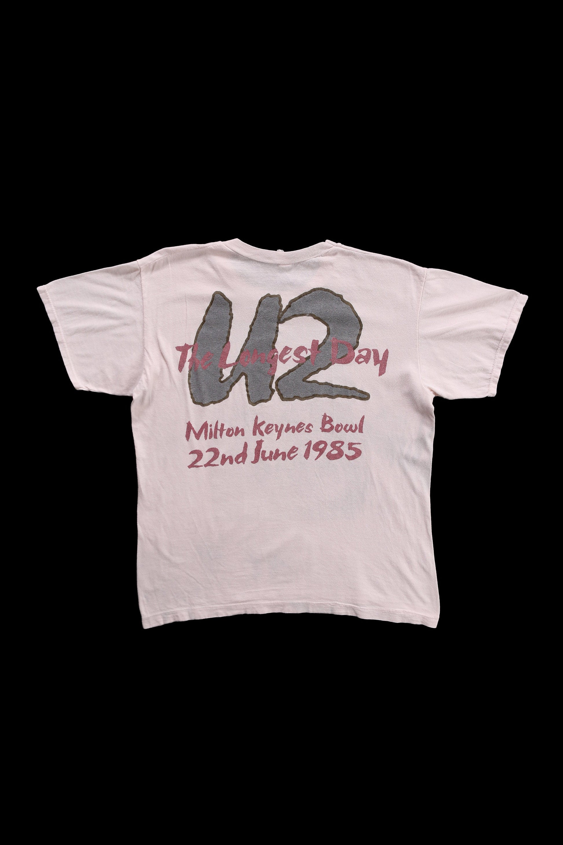 Vintage U2 The Longest Day Milton Keynes Bowl 22nd June 1985 White Graphic T-shirt