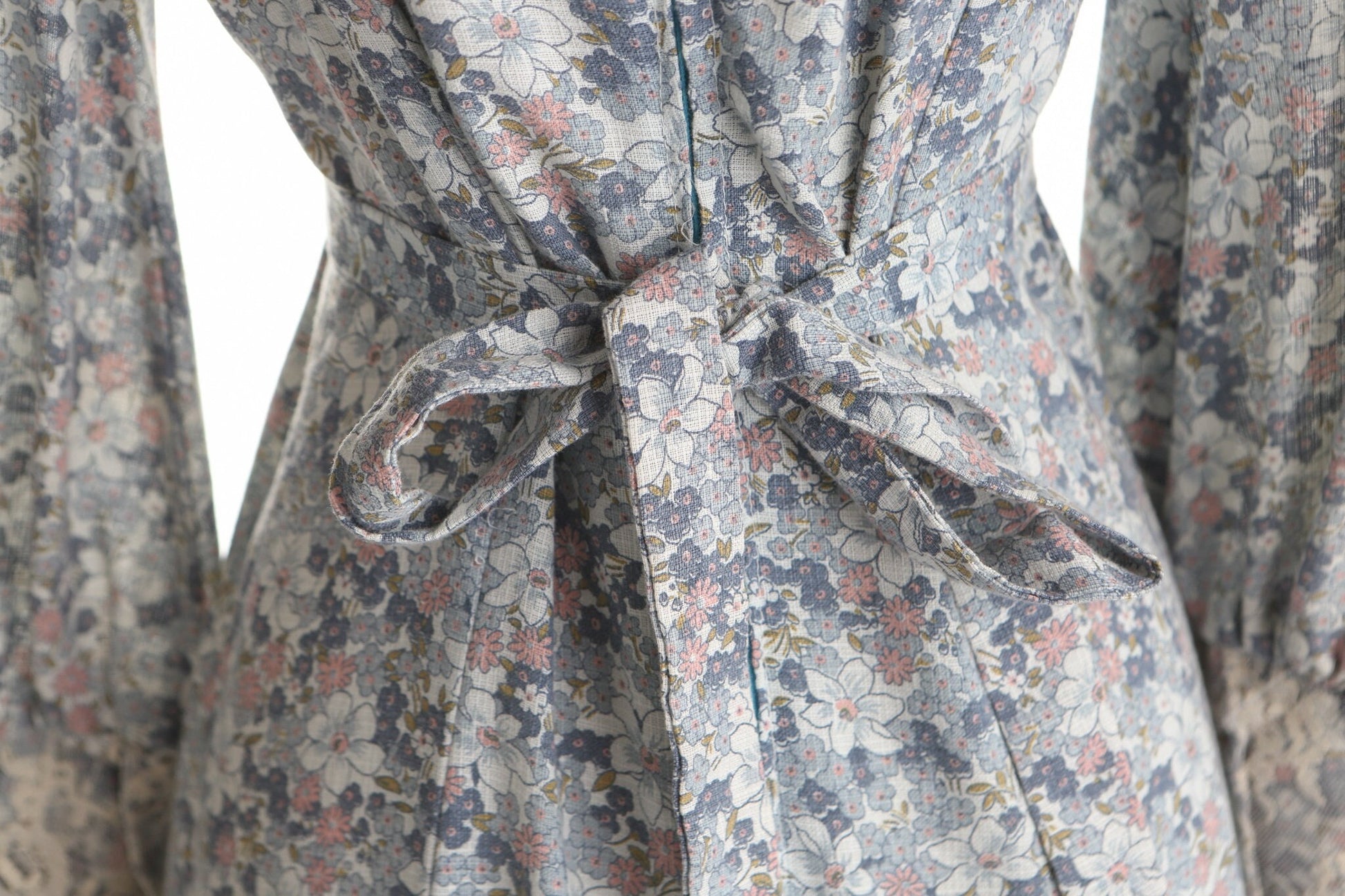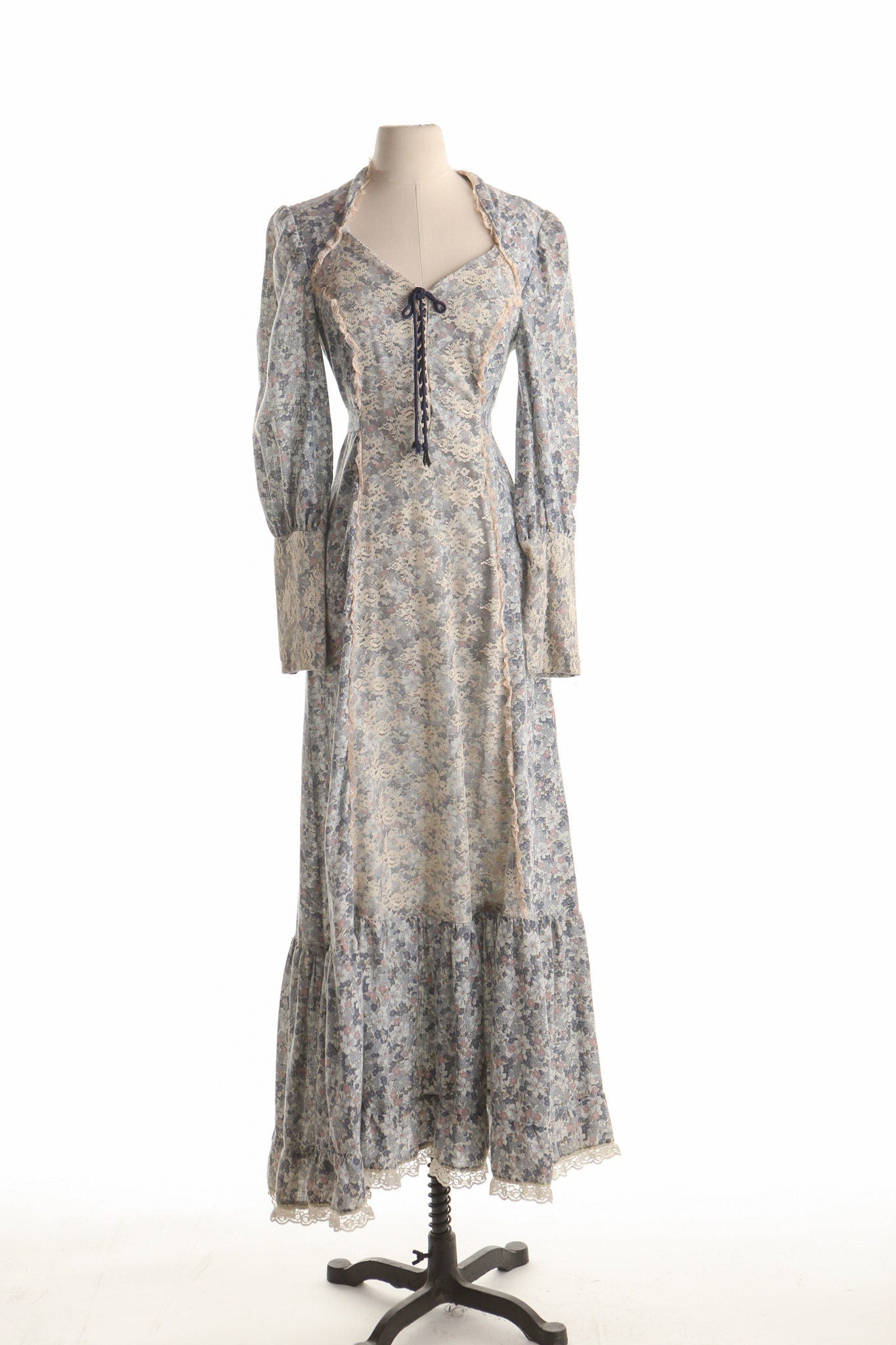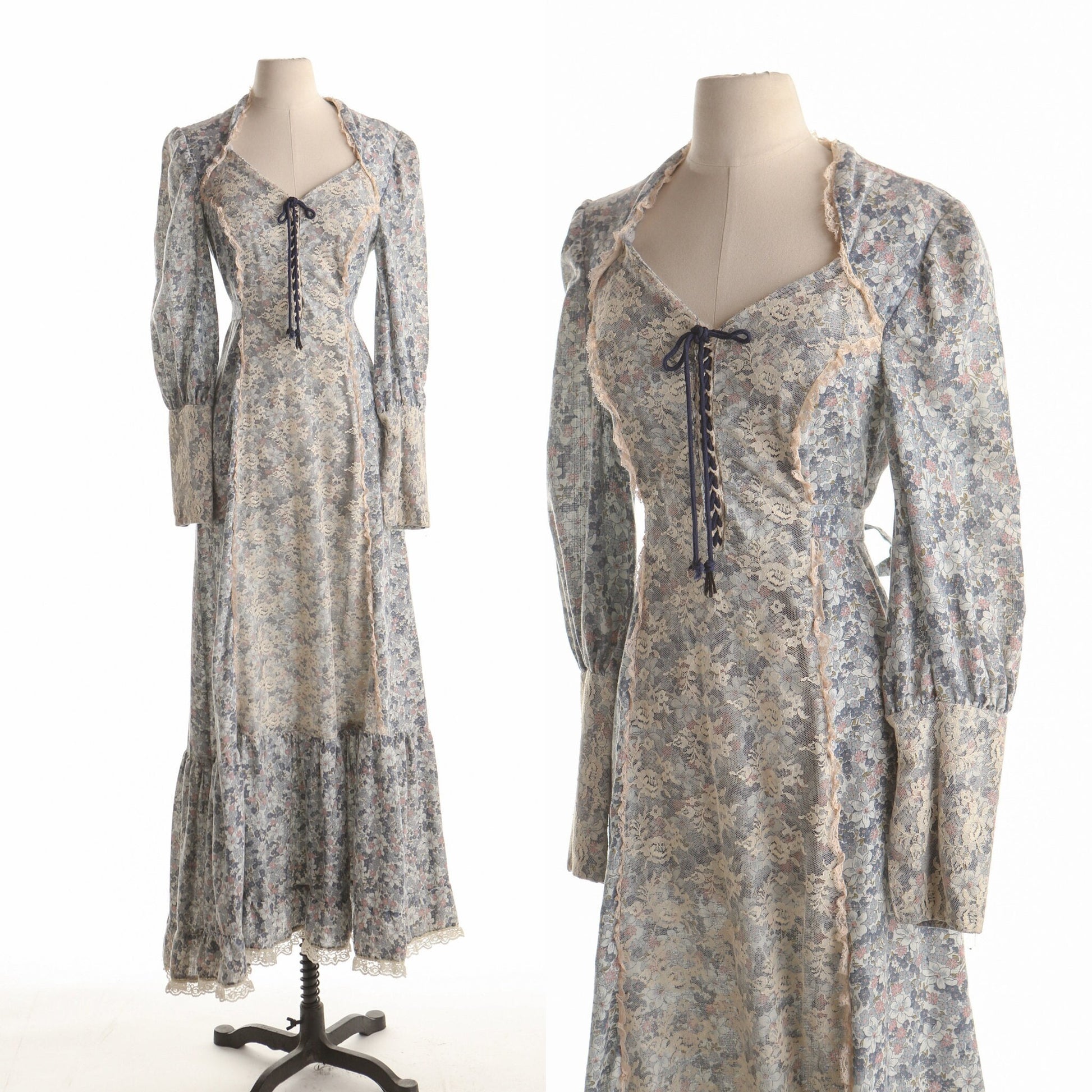 Vintage western victorian dress floral print blue 70's hippie boho long