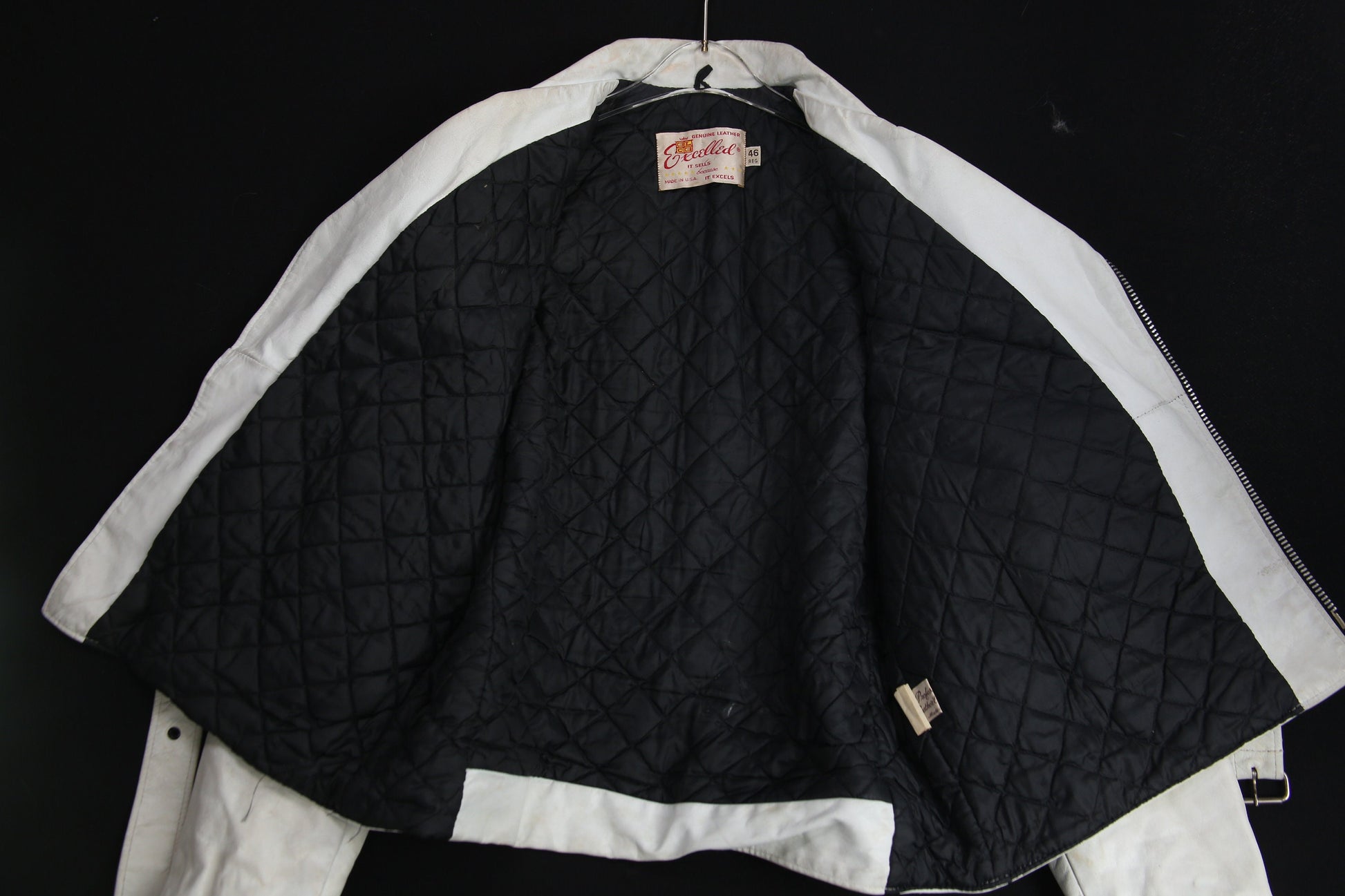 Vintage White Biker Leather Jacket by Excelled - Estimated Era 1980's - 1990's