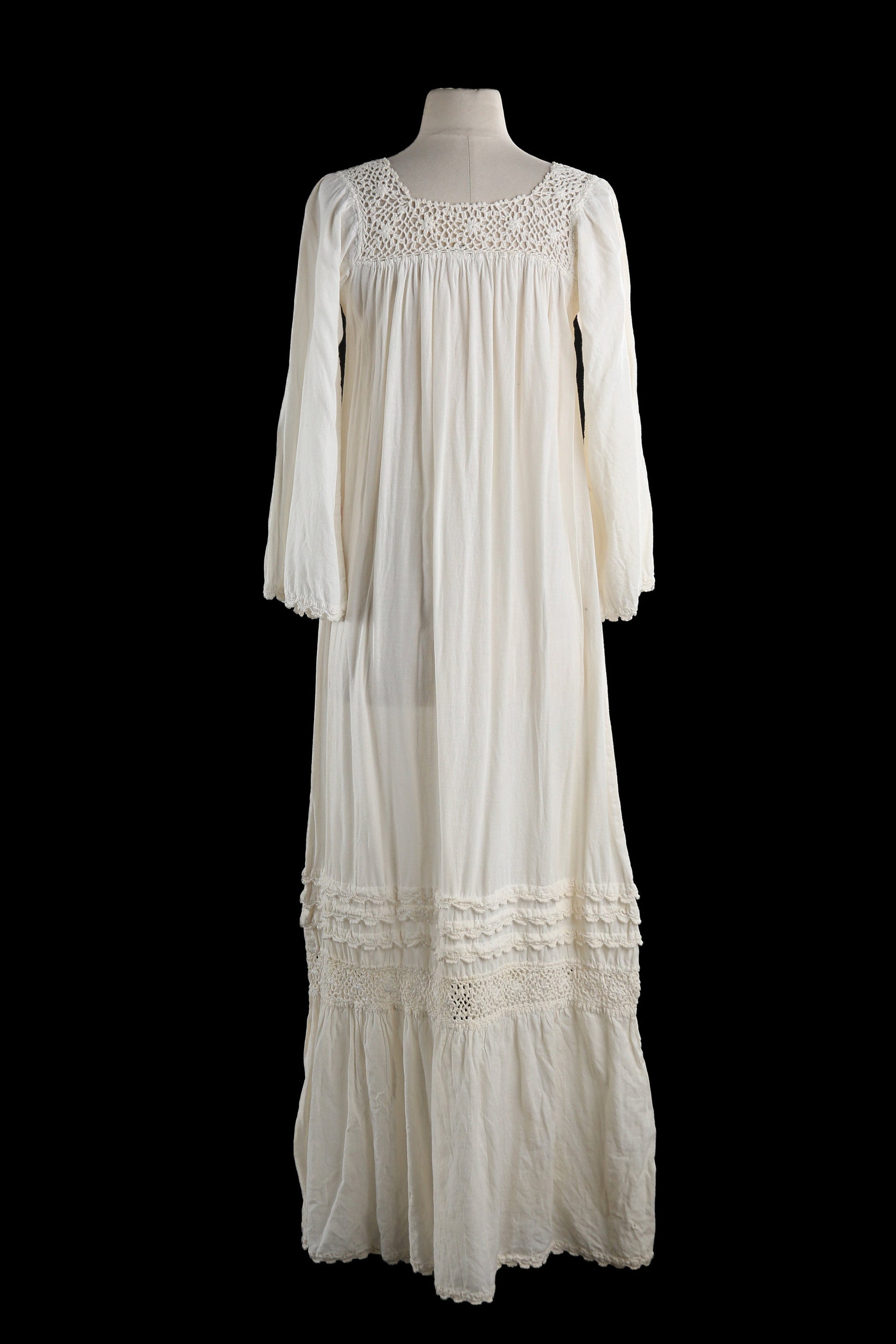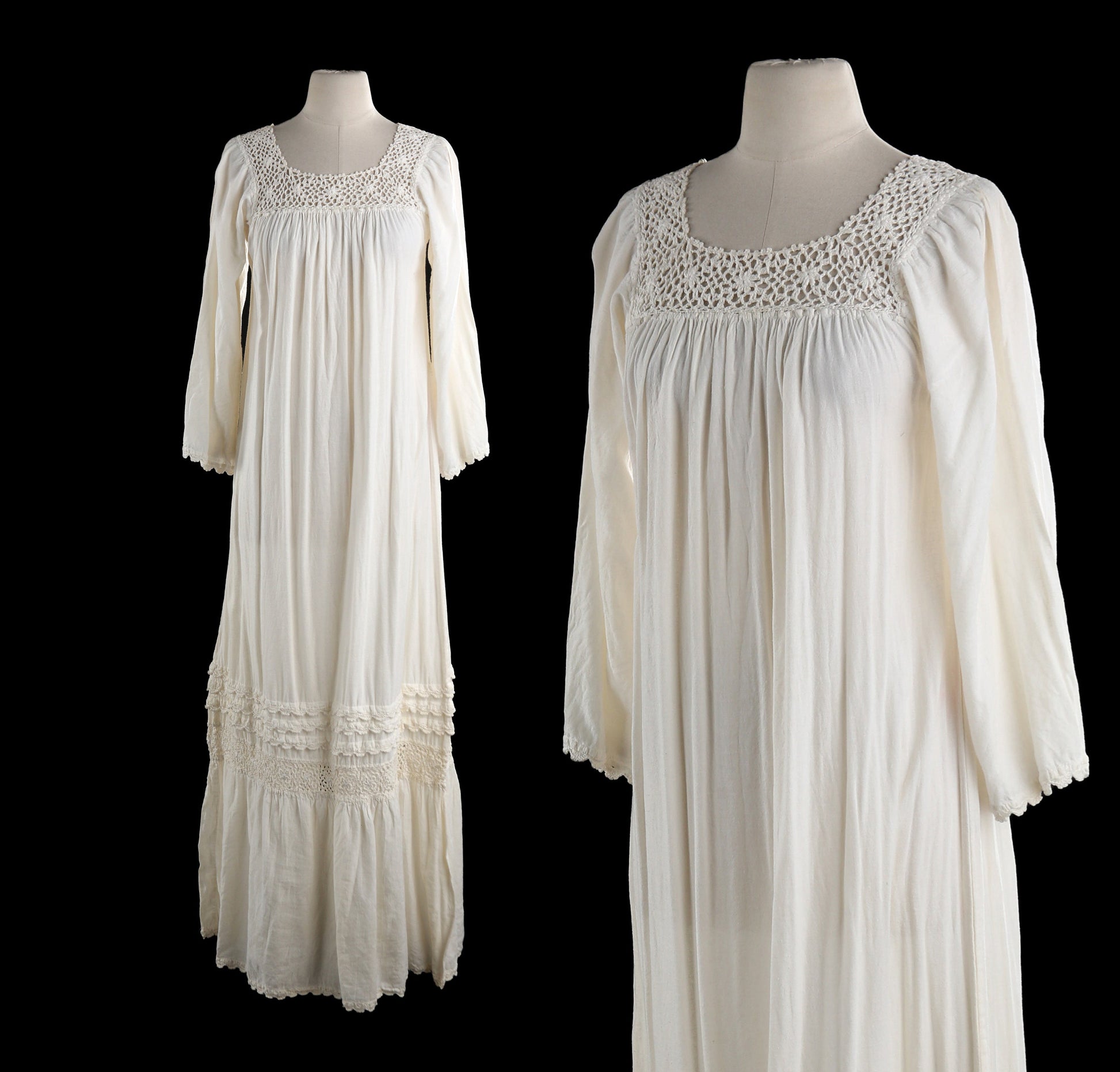 Vintage White Blouson Dress Muumuu - Estimated Era 1970's - 1980's