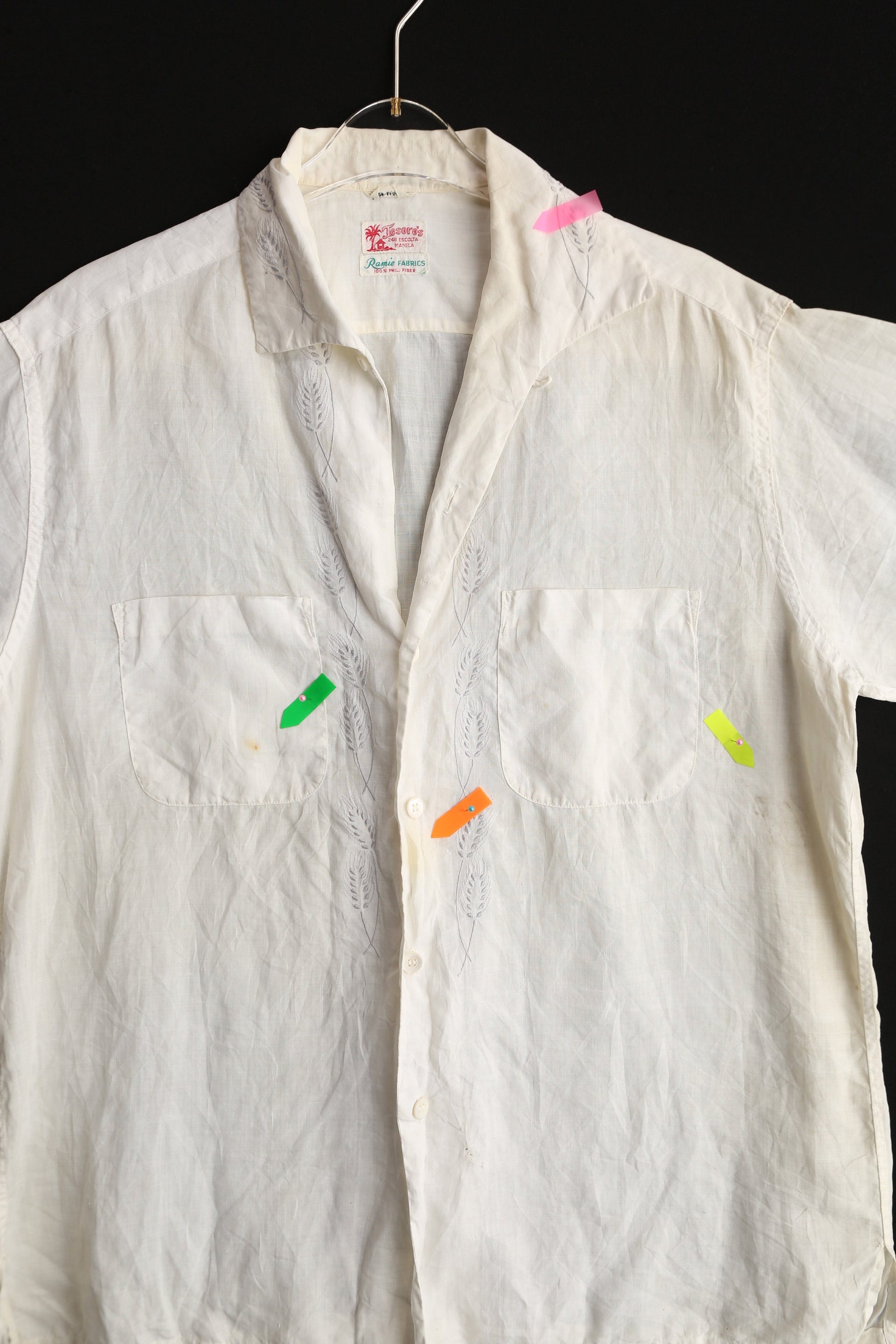 Vintage White Casual Shirt - Short Sleeves - by Tesoro's Escolta Manila Ramie Fabrics