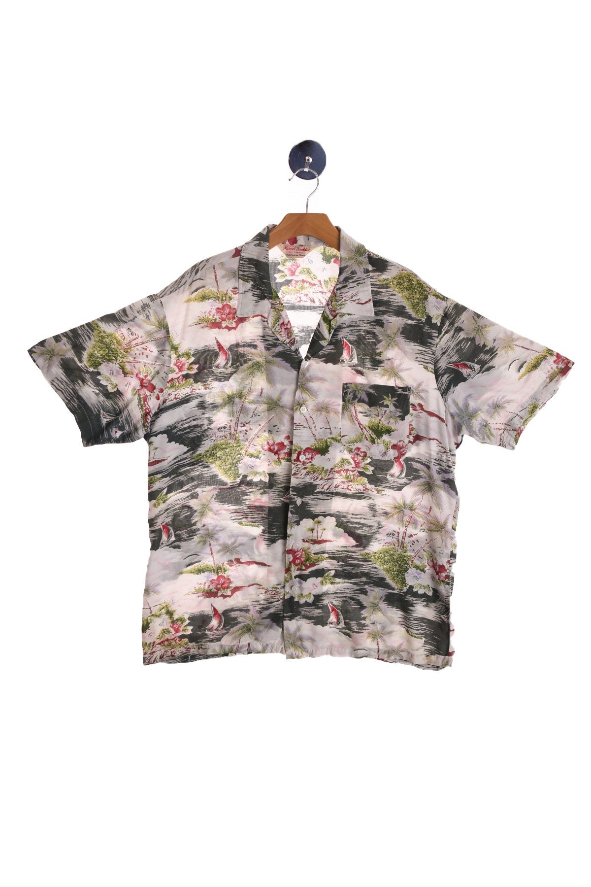 Vintage White Hawaiian Shirt By Michael Gerald - USA Men's size Large