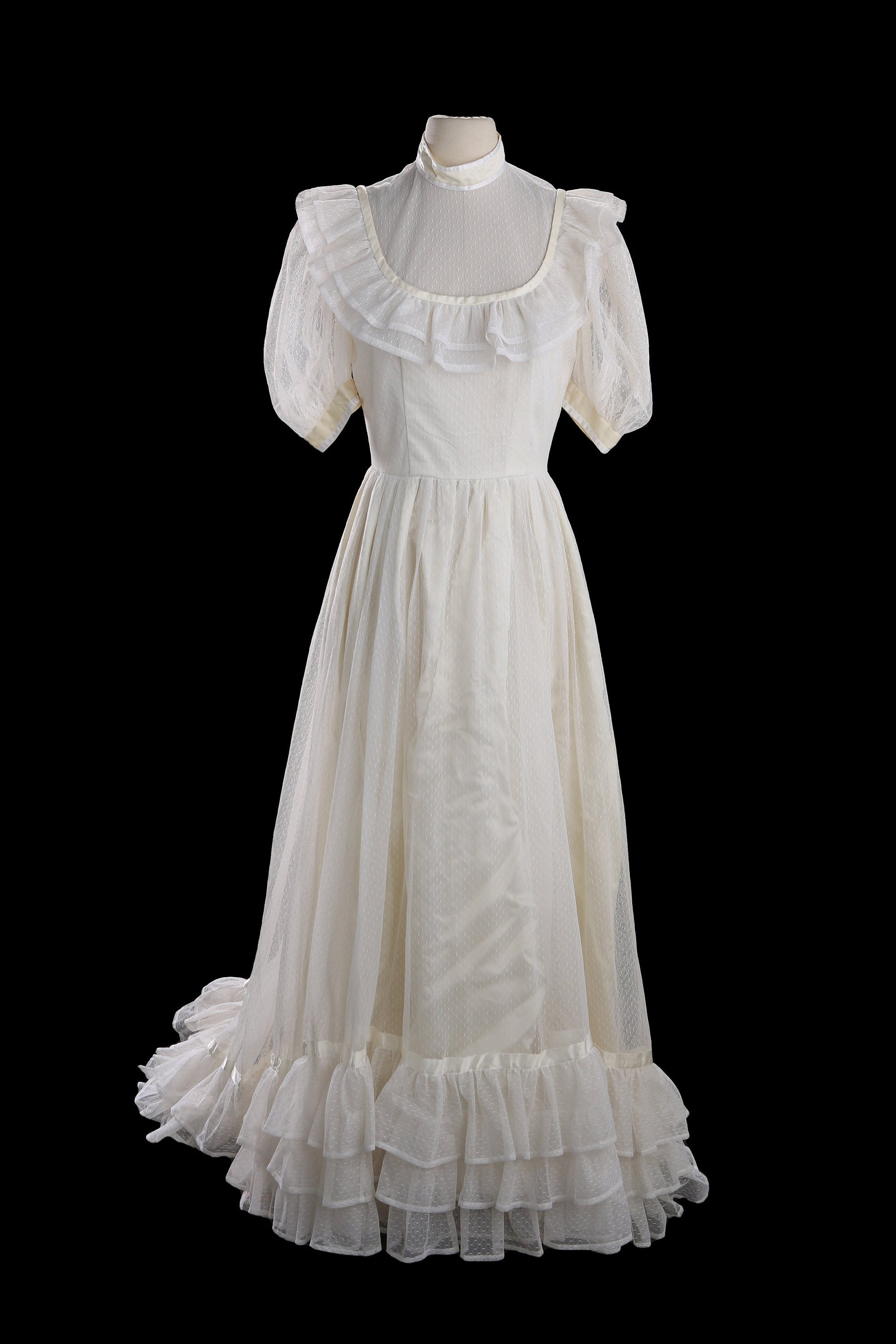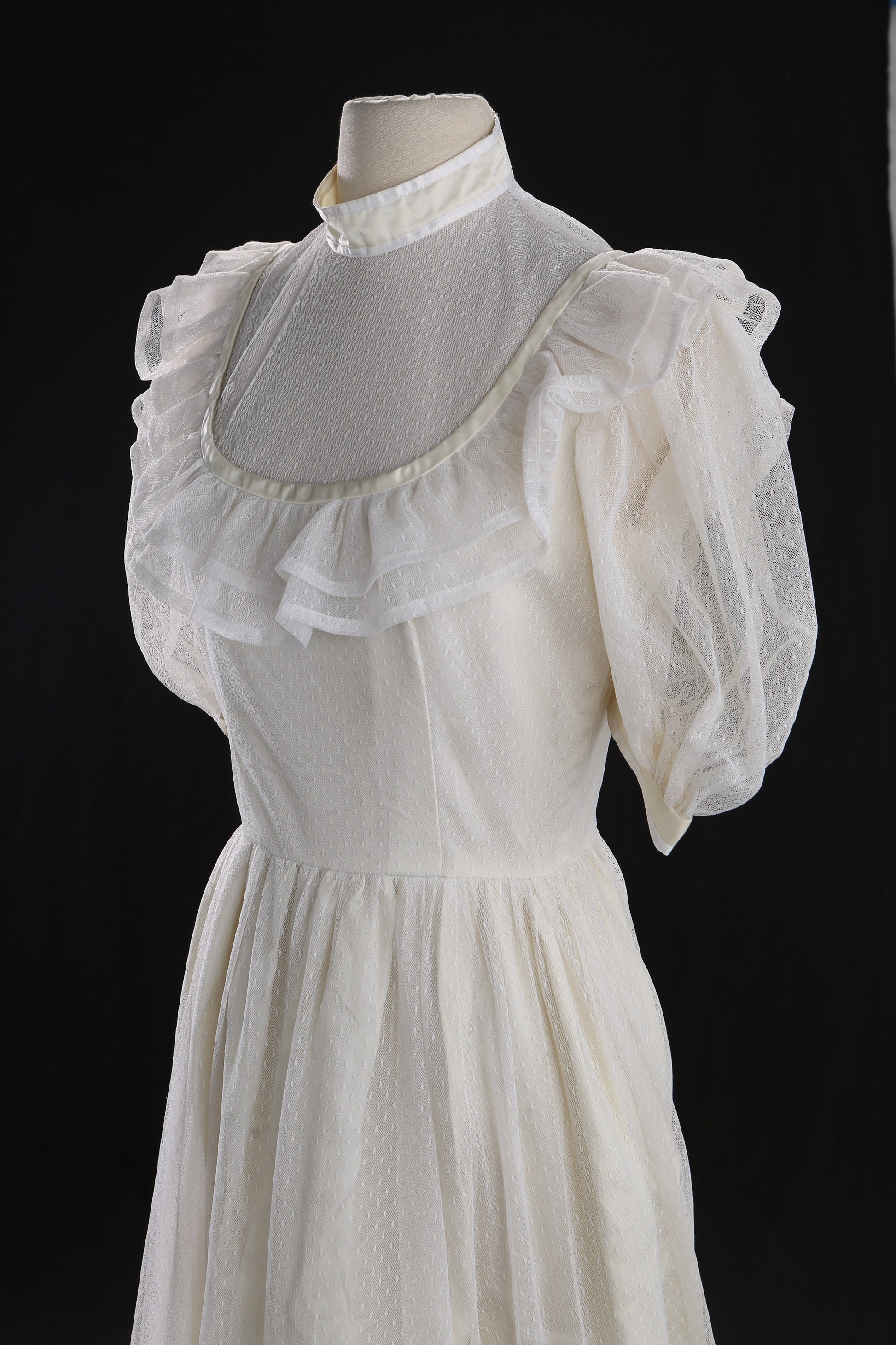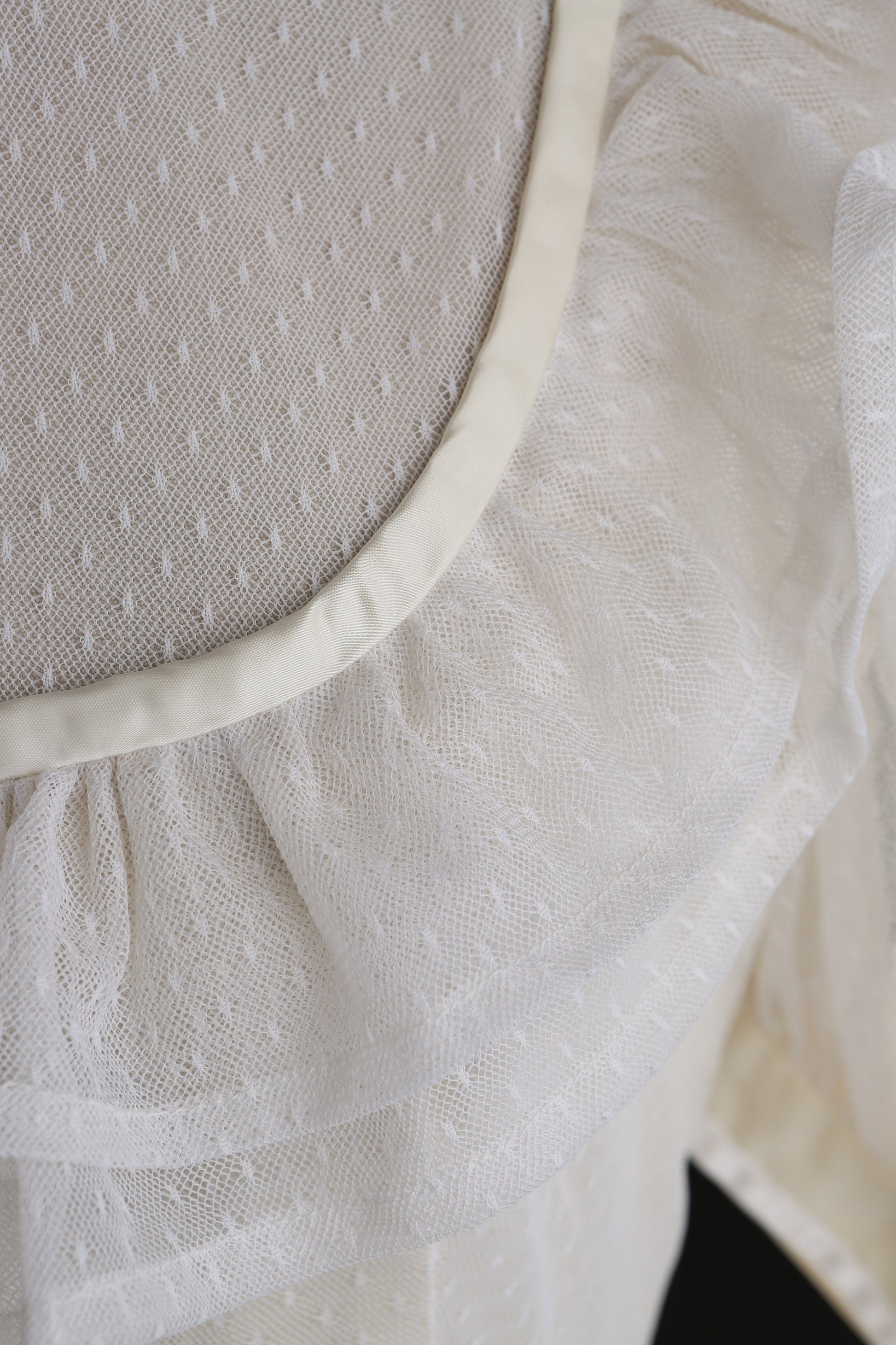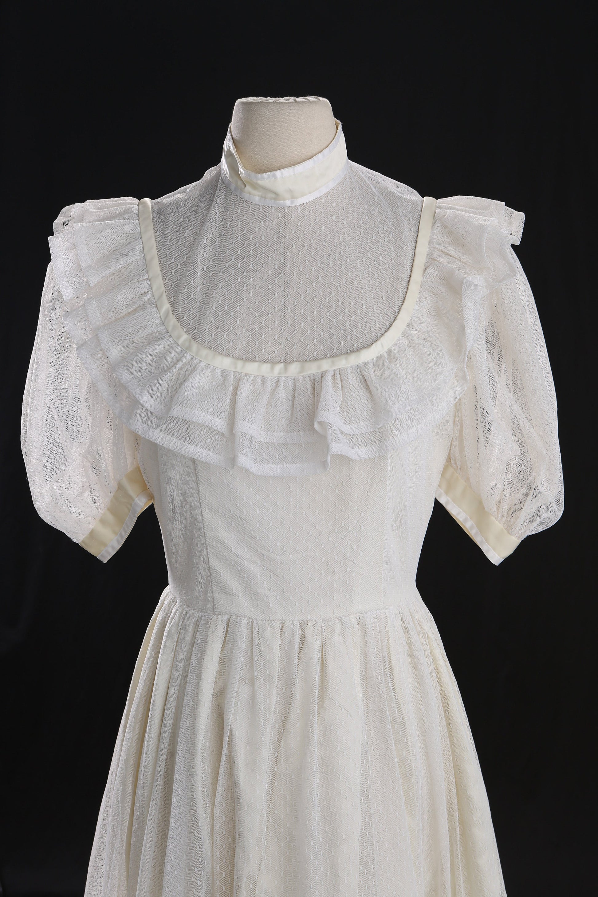 Vintage White Long Prairie Dress - Era 1970s - 1980s