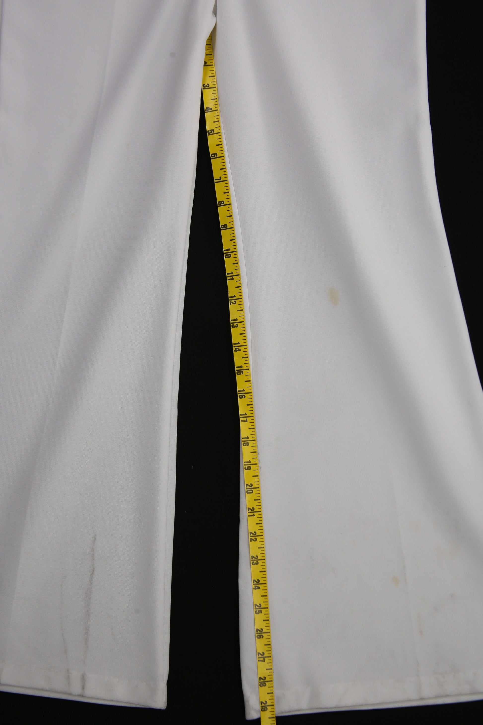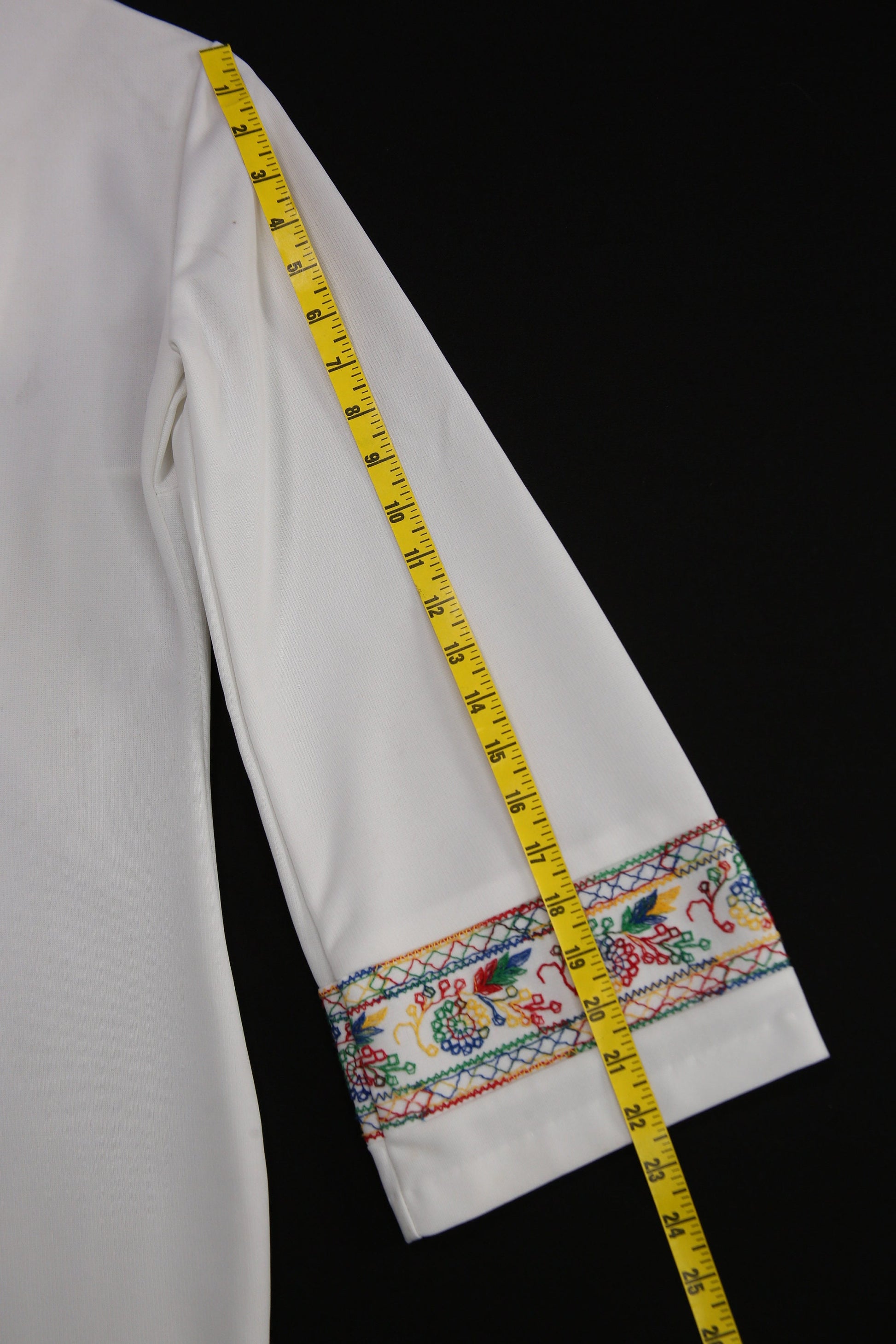 Vintage White Poly Jumpsuit with Embroidered Flower Chest Detail - Estimated Era 1970's - 1980's