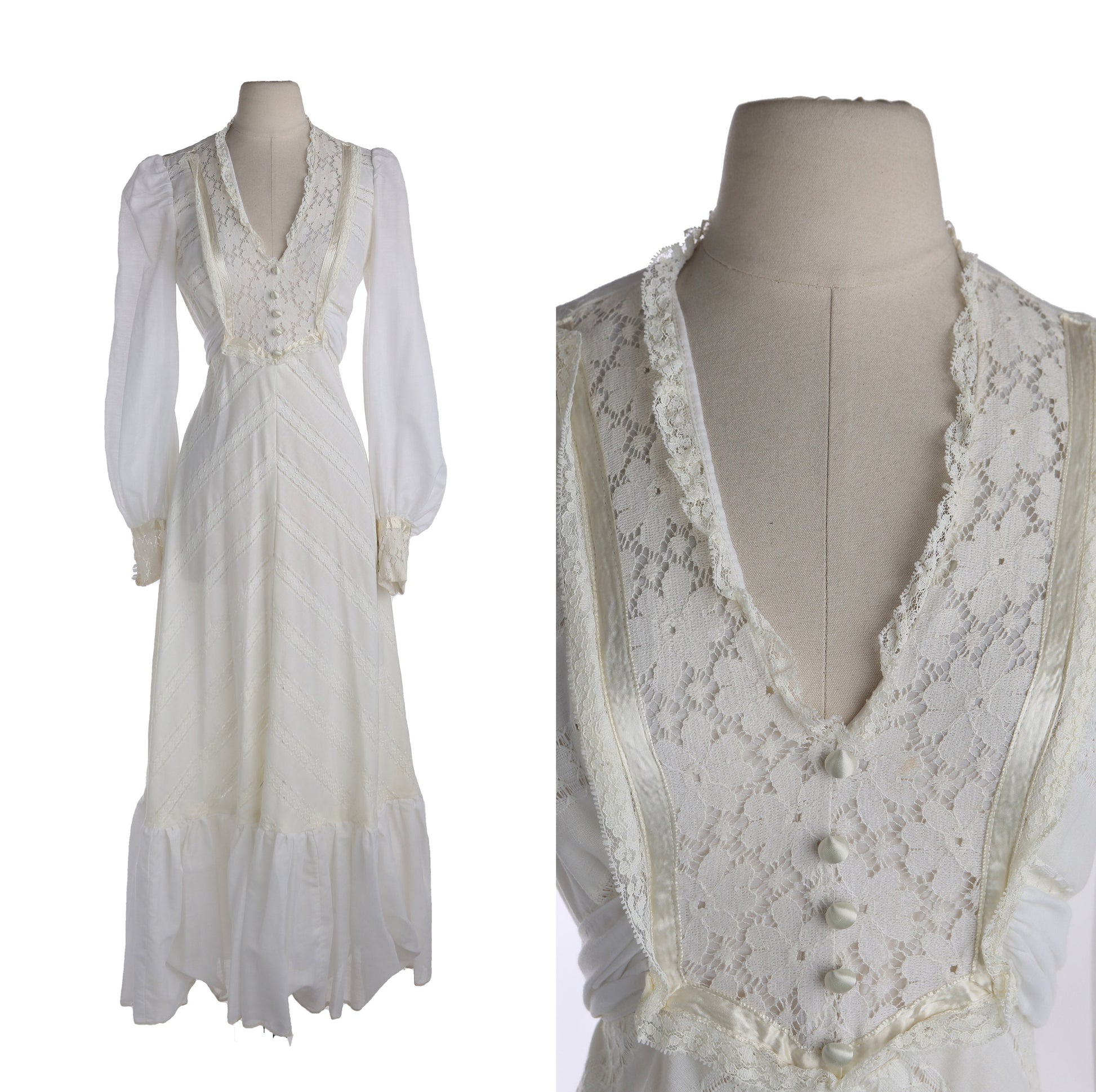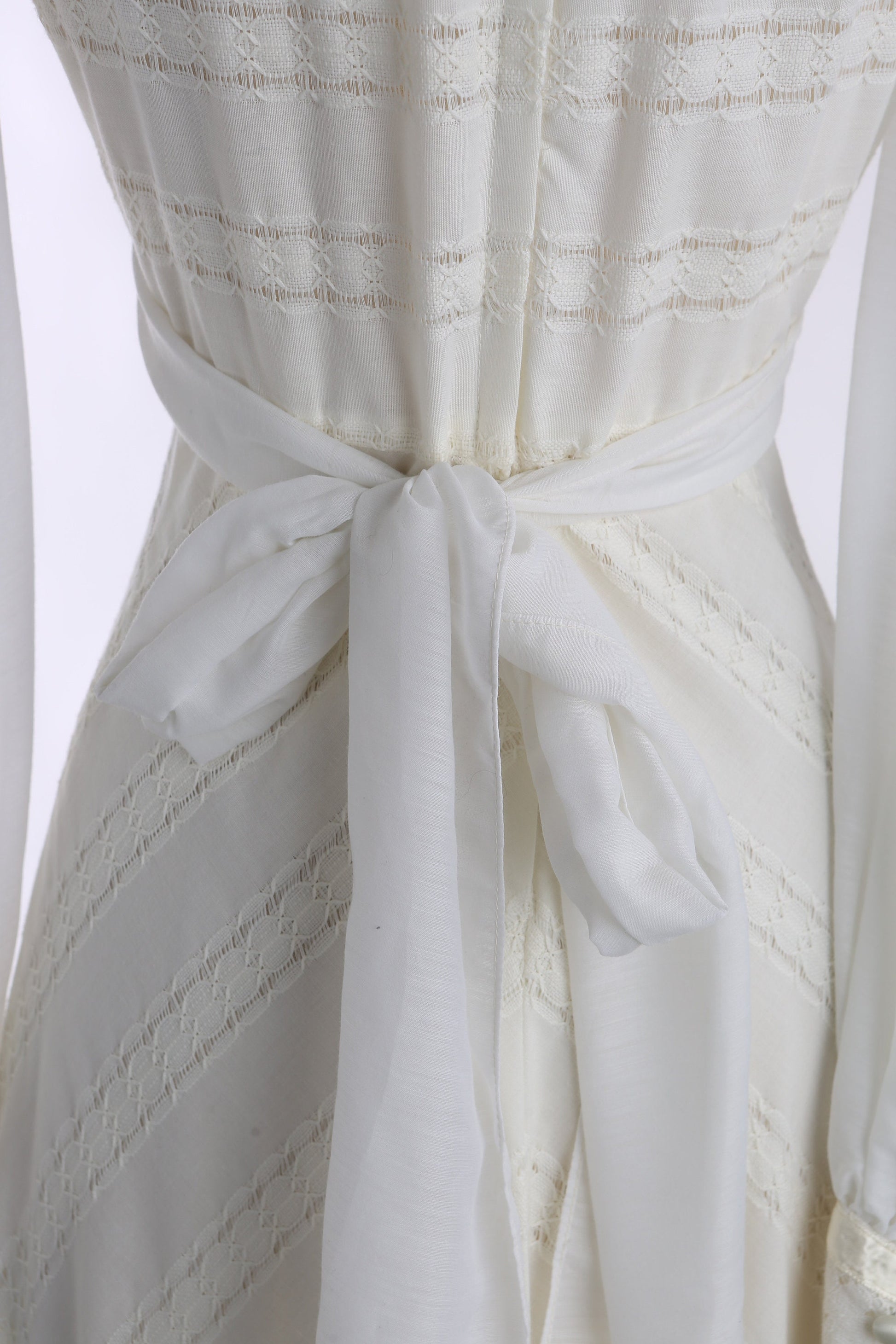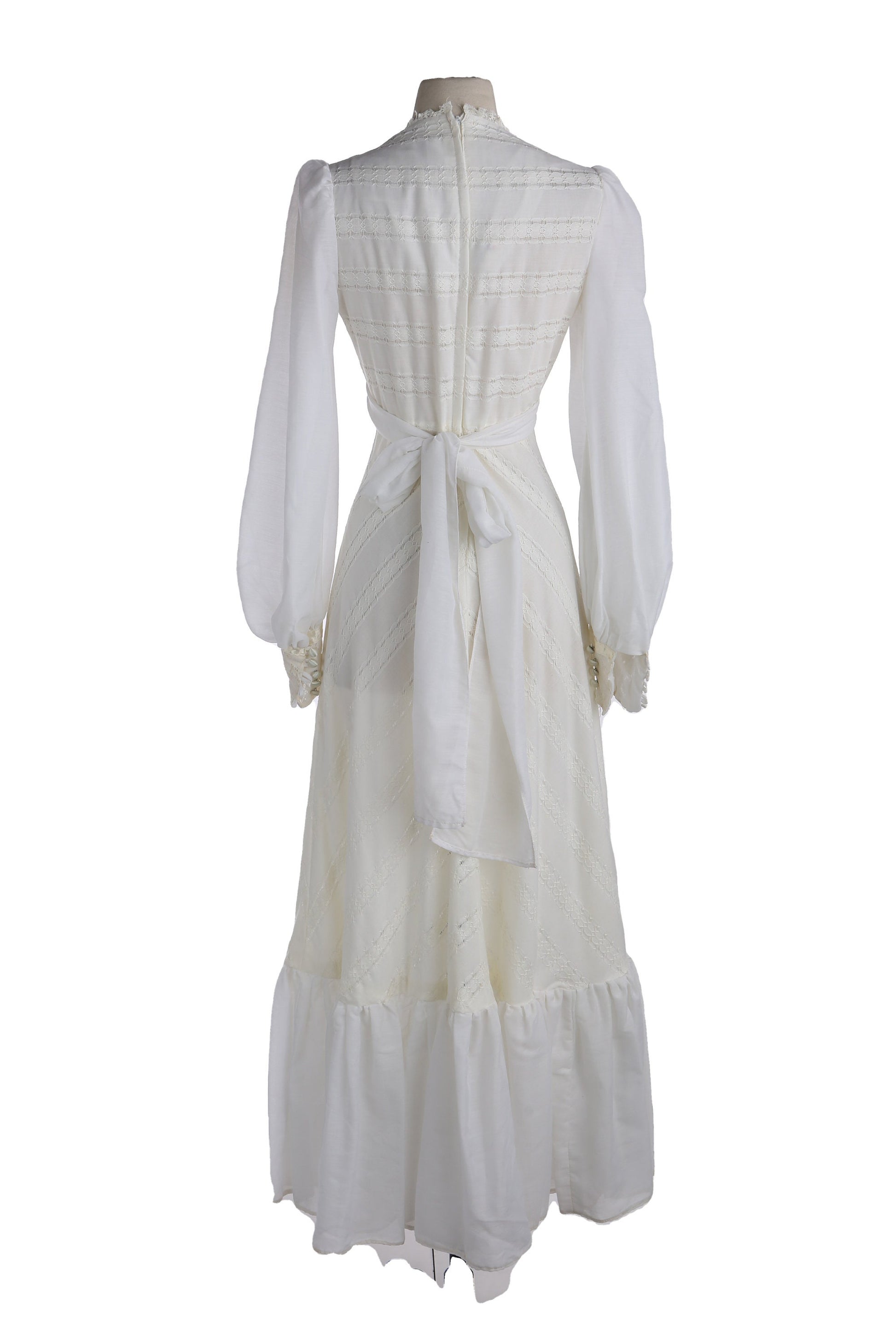 Vintage White Prairie Dress - Era 1970s - 1980s