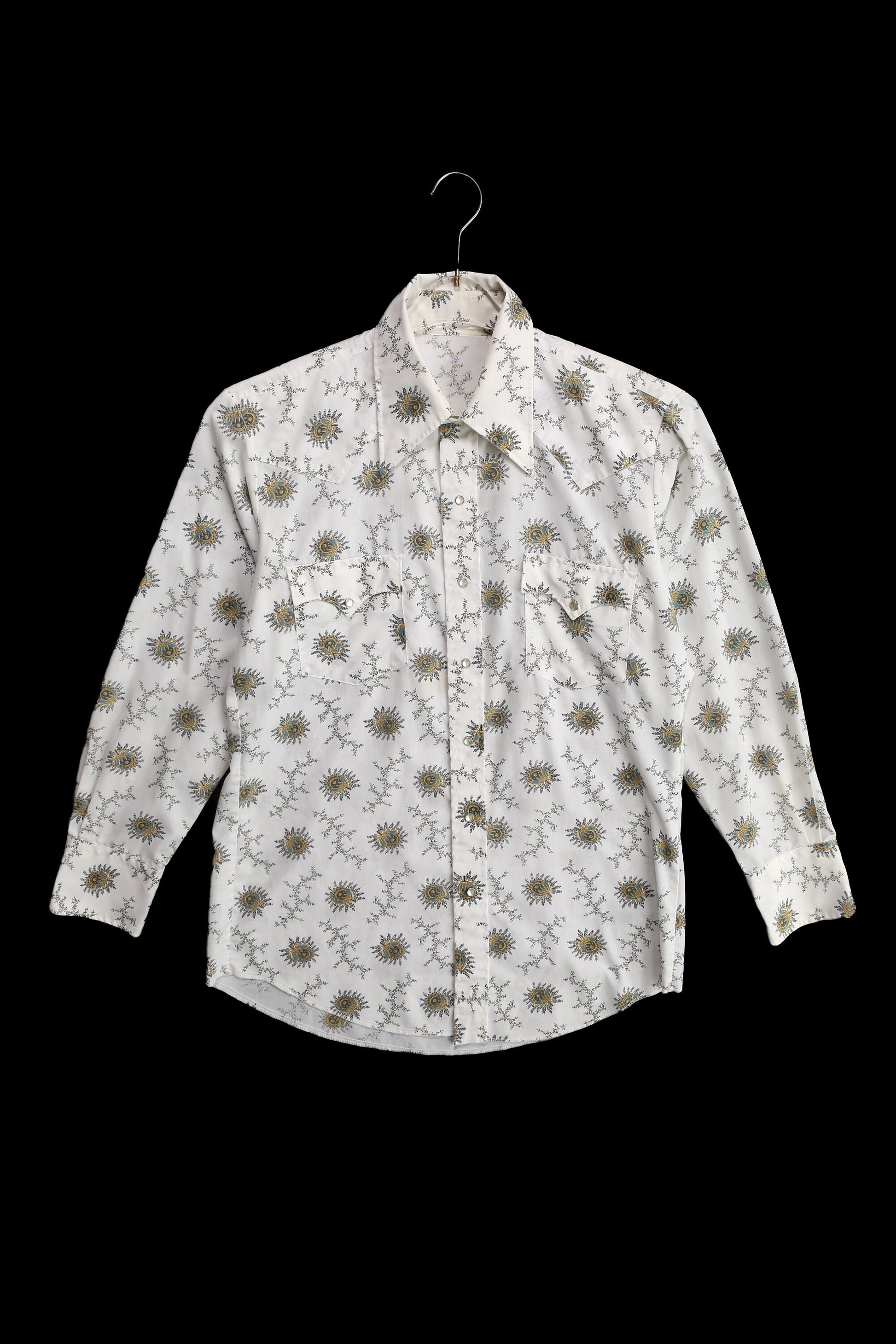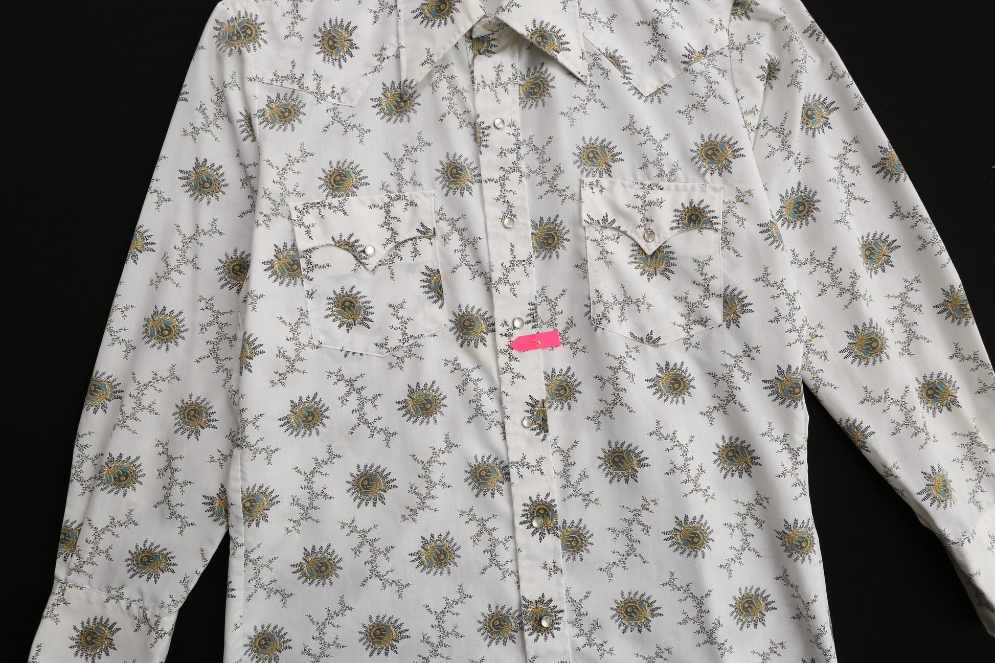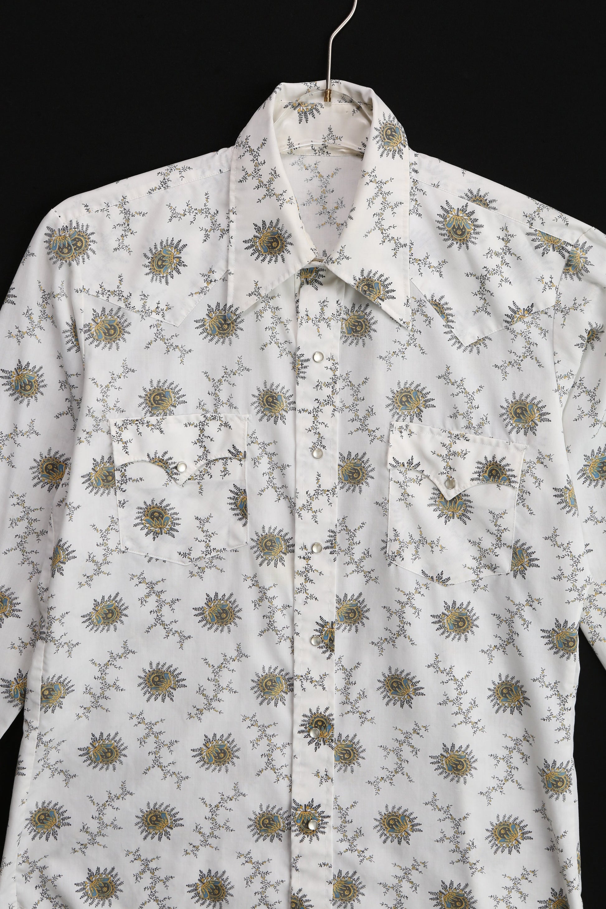 Vintage White Western Shirt with Floral Print - Estimated Era 1970's - 1980's