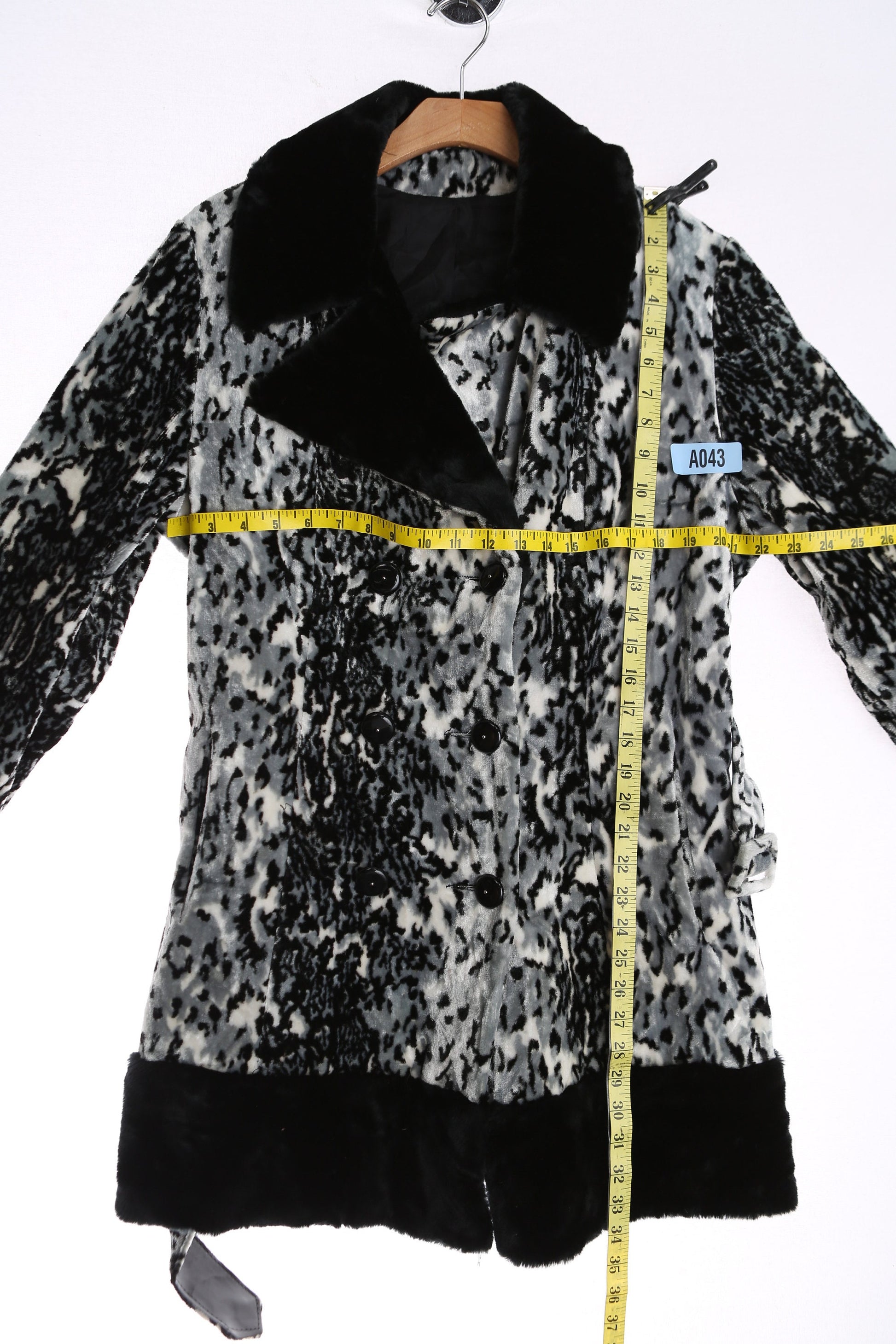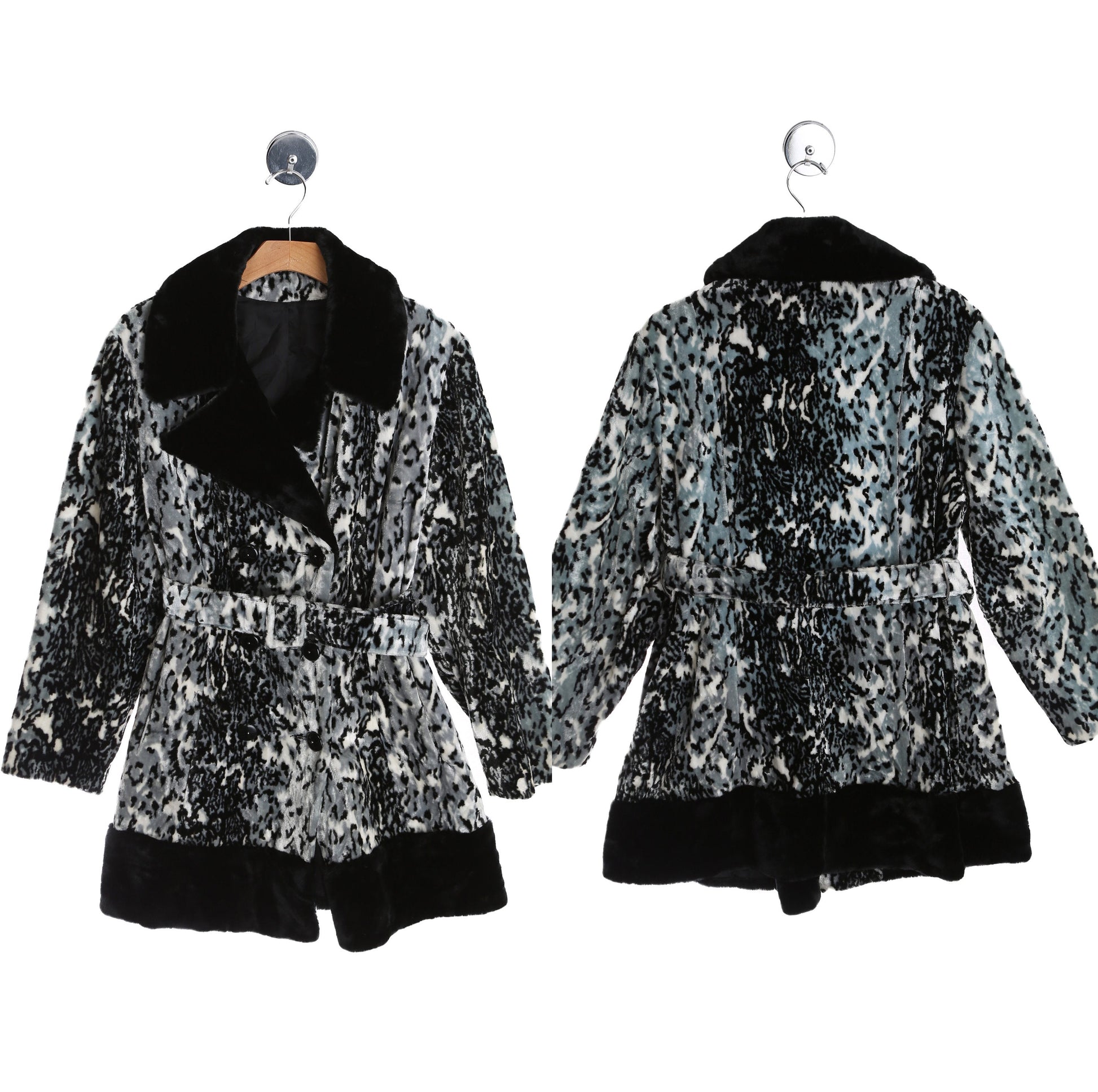 Vintage Women 1970's Gray Lepard Print Faux Fur Winter Coat