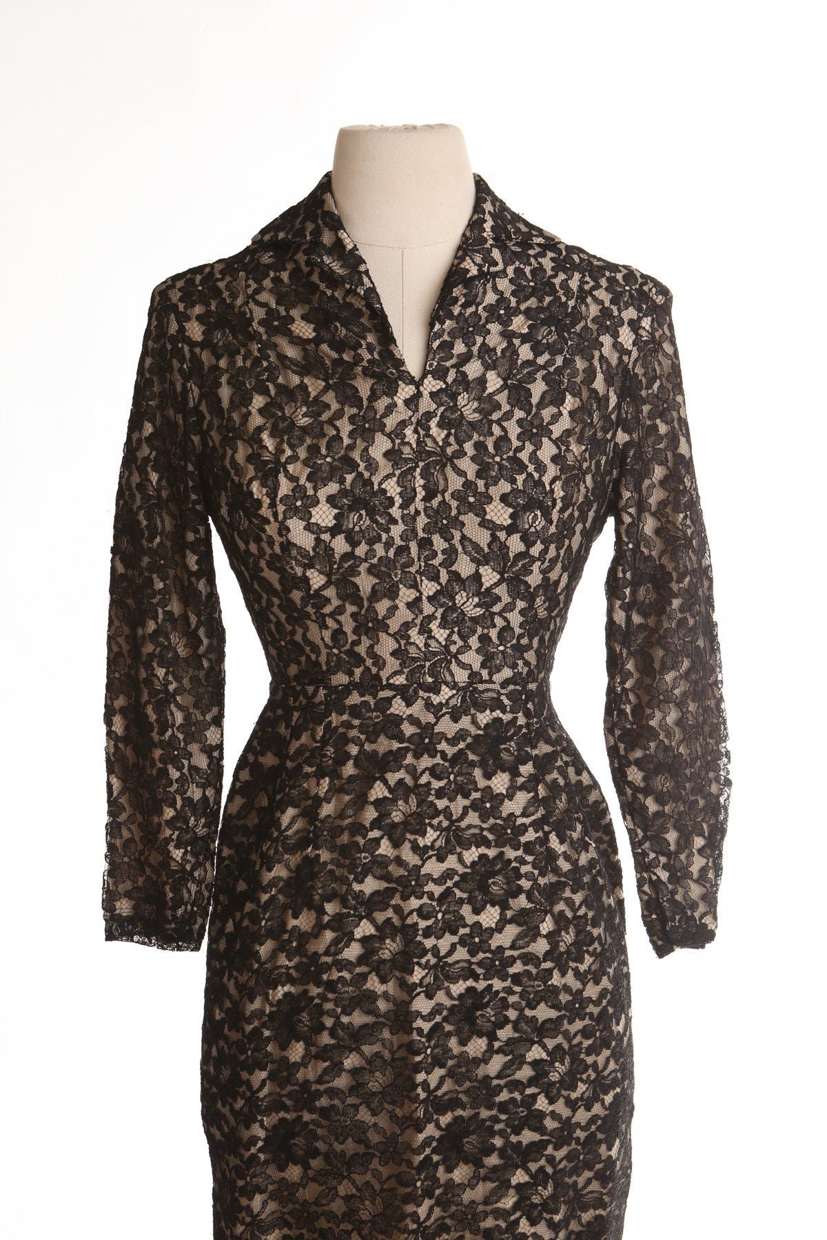 Vintage women 40's lace black dress long sleeve pinup casual foramal widow