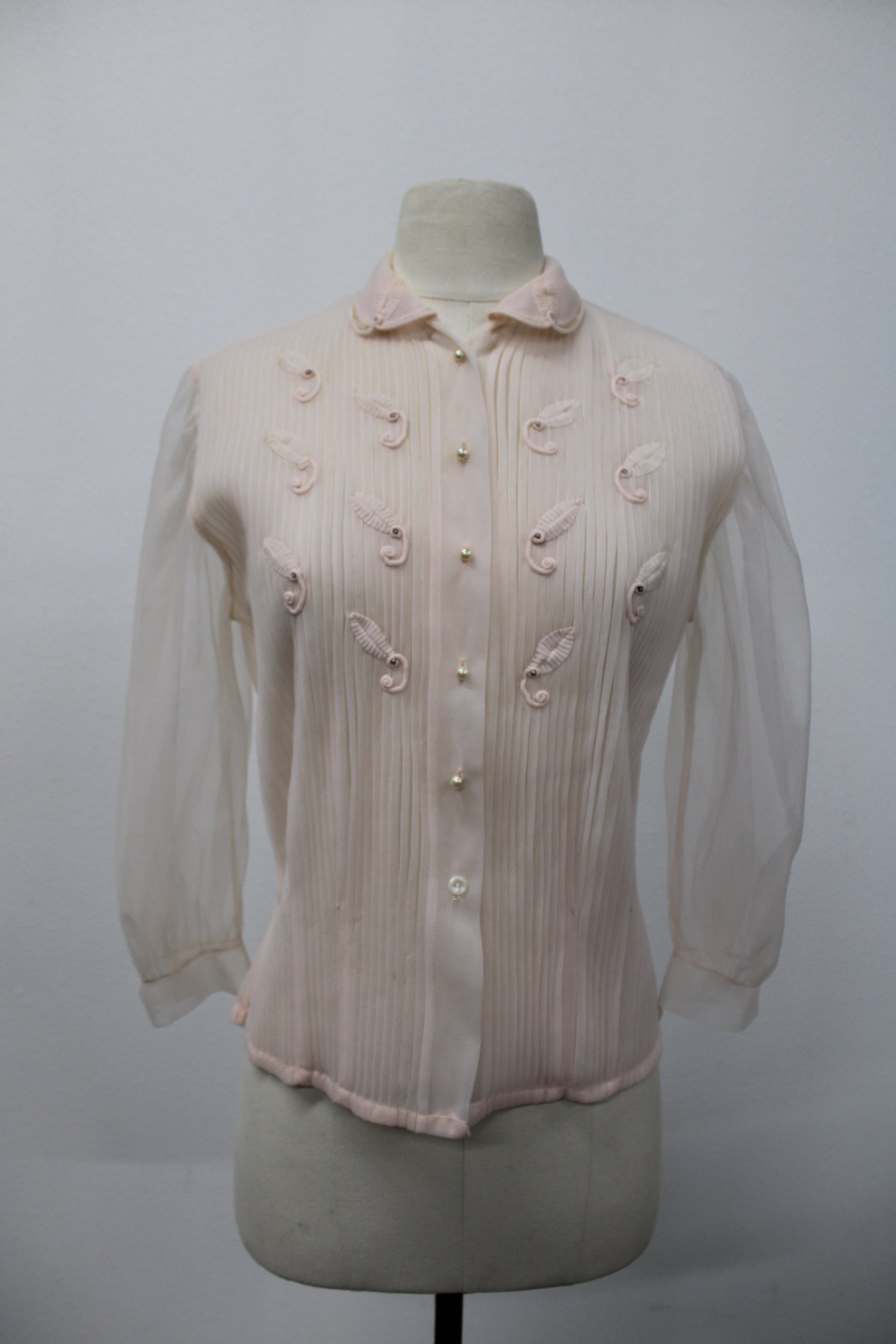 Vintage women 50's 40's blouse pink polyester nightgown casual pearl button