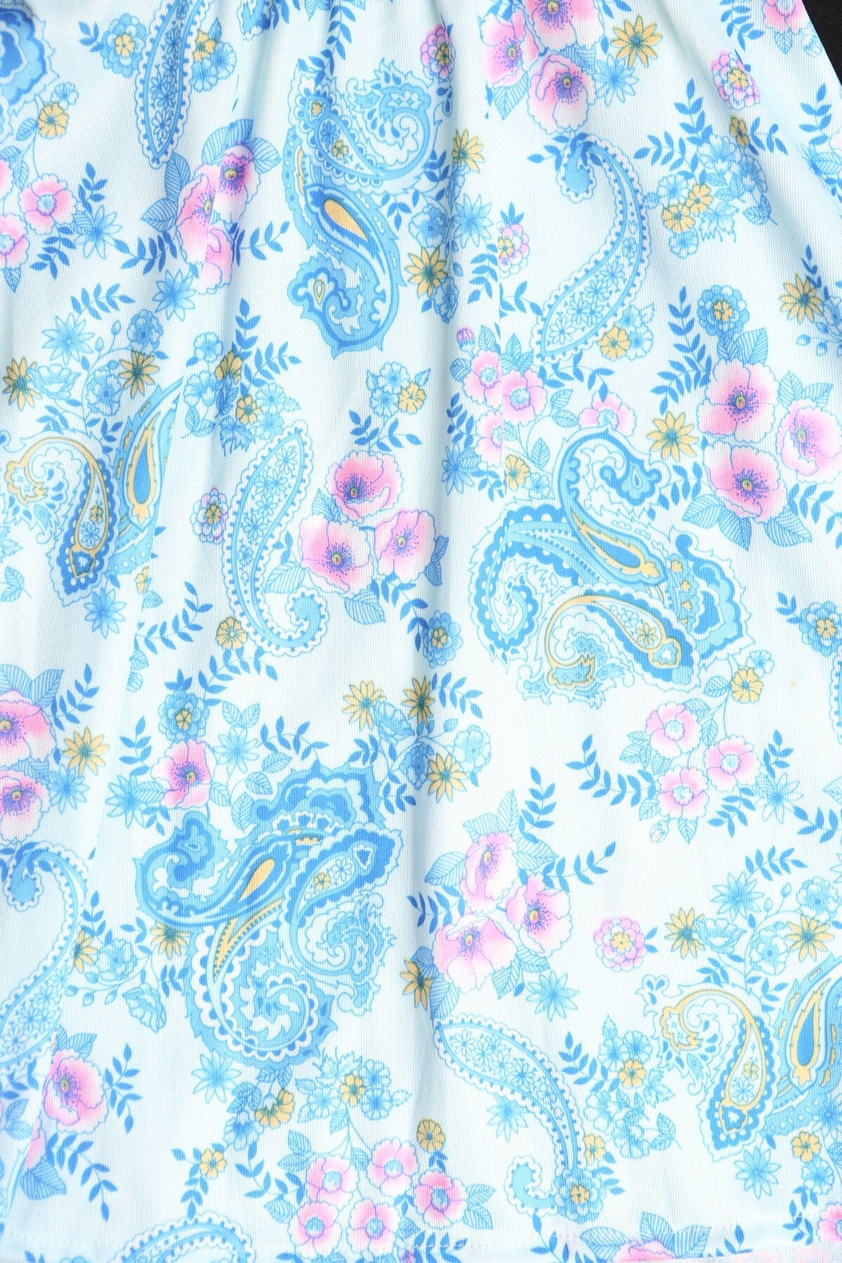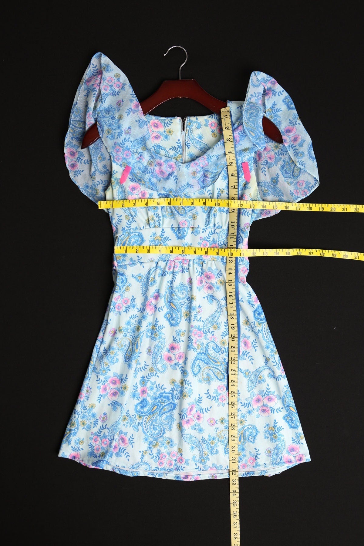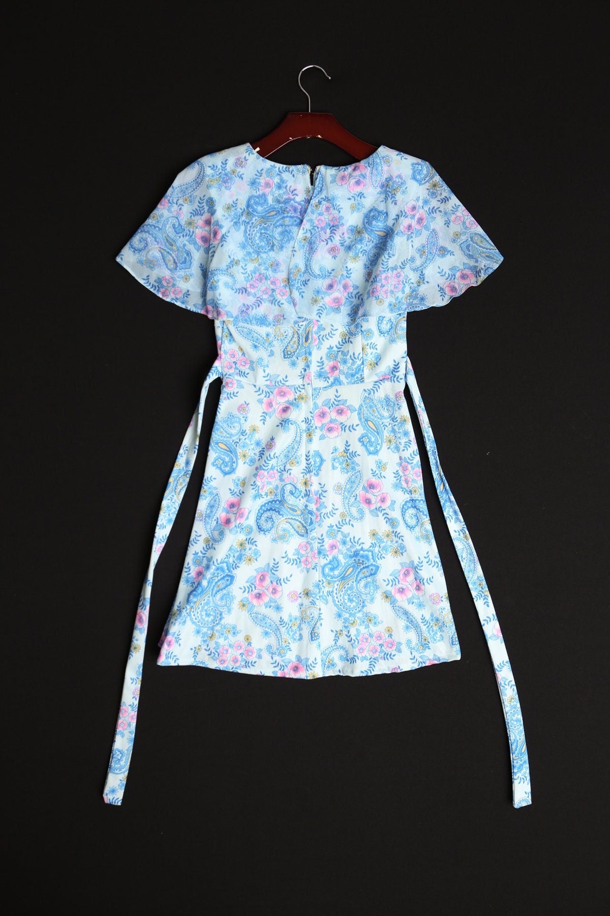 Vintage women 70's red paisley short floral print dress tie