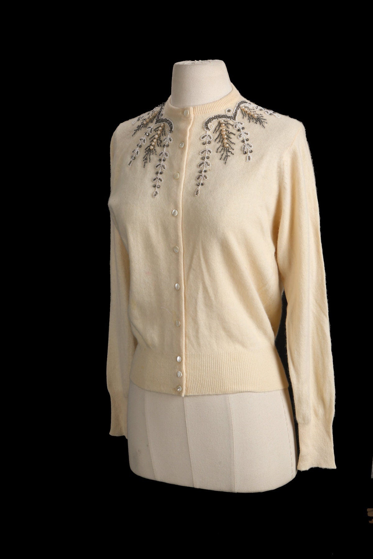 Vintage Women Beaded Beige Sweater - Era 1950s - 1960s - by Ladies Pride