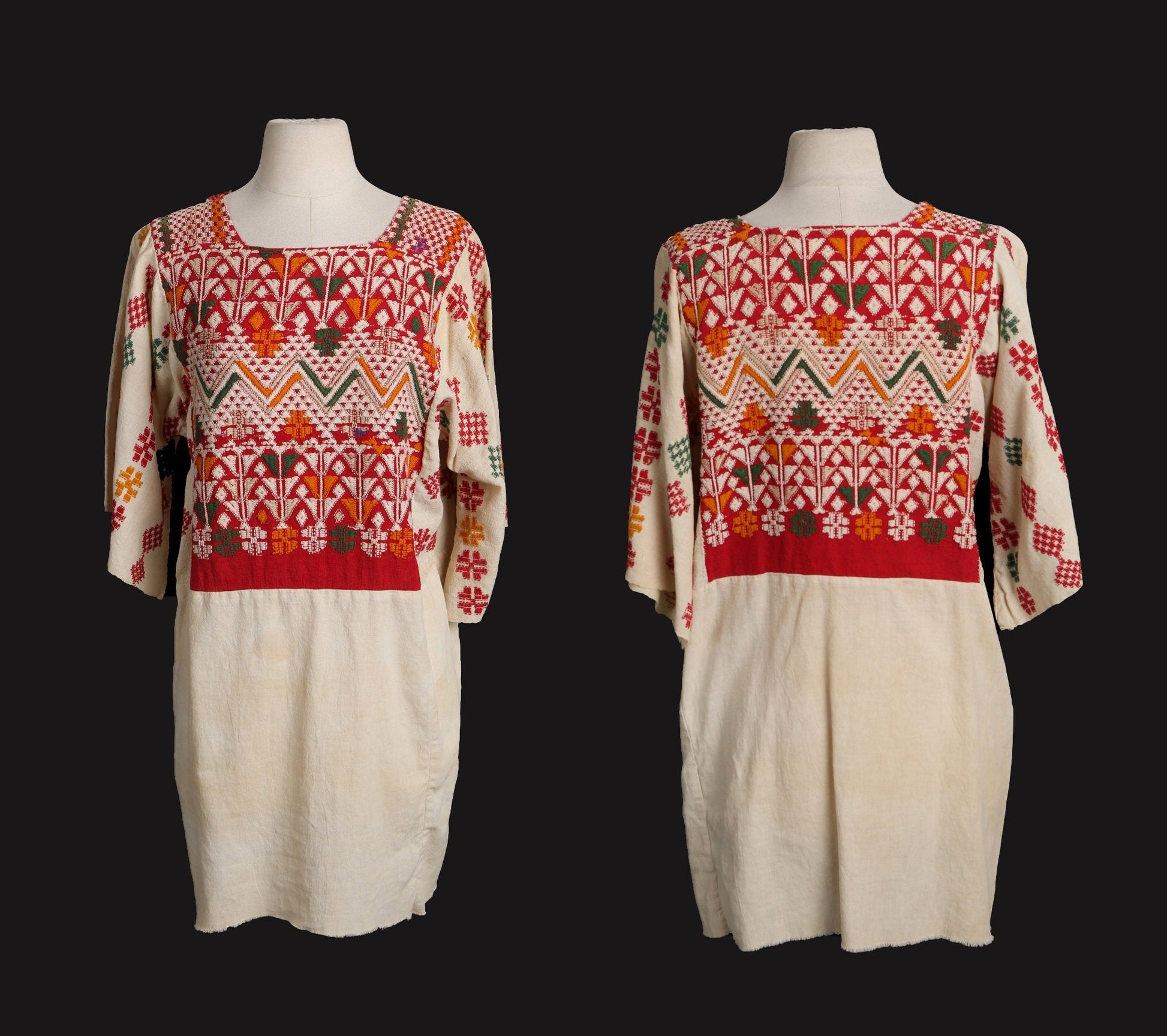 Vintage Embroidered Dress / 3/4 Sleeve / 1970s - 1980s