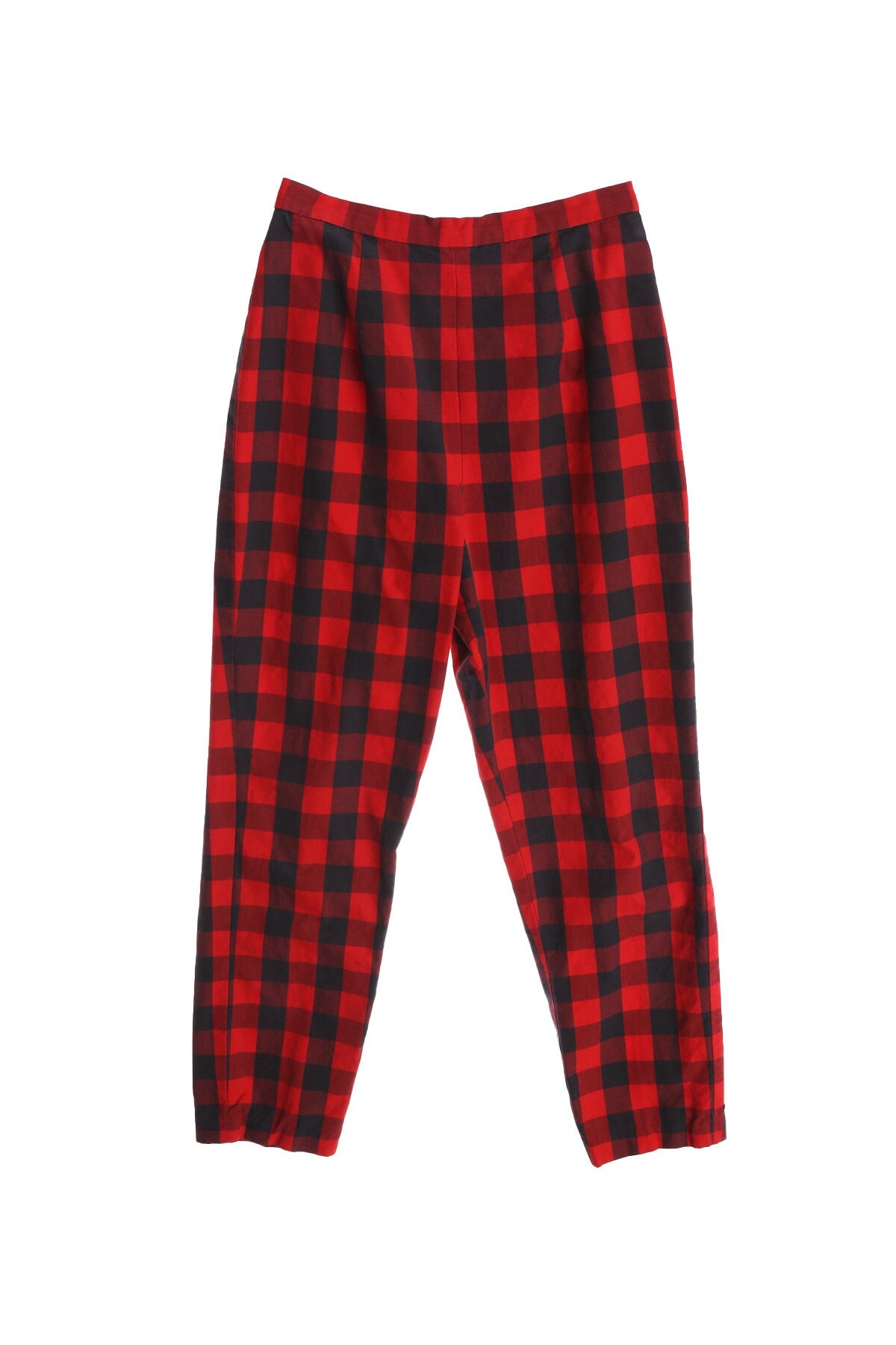 Vintage Women Black and Red Plaid Pants - High Waist - Back Zipper Closure